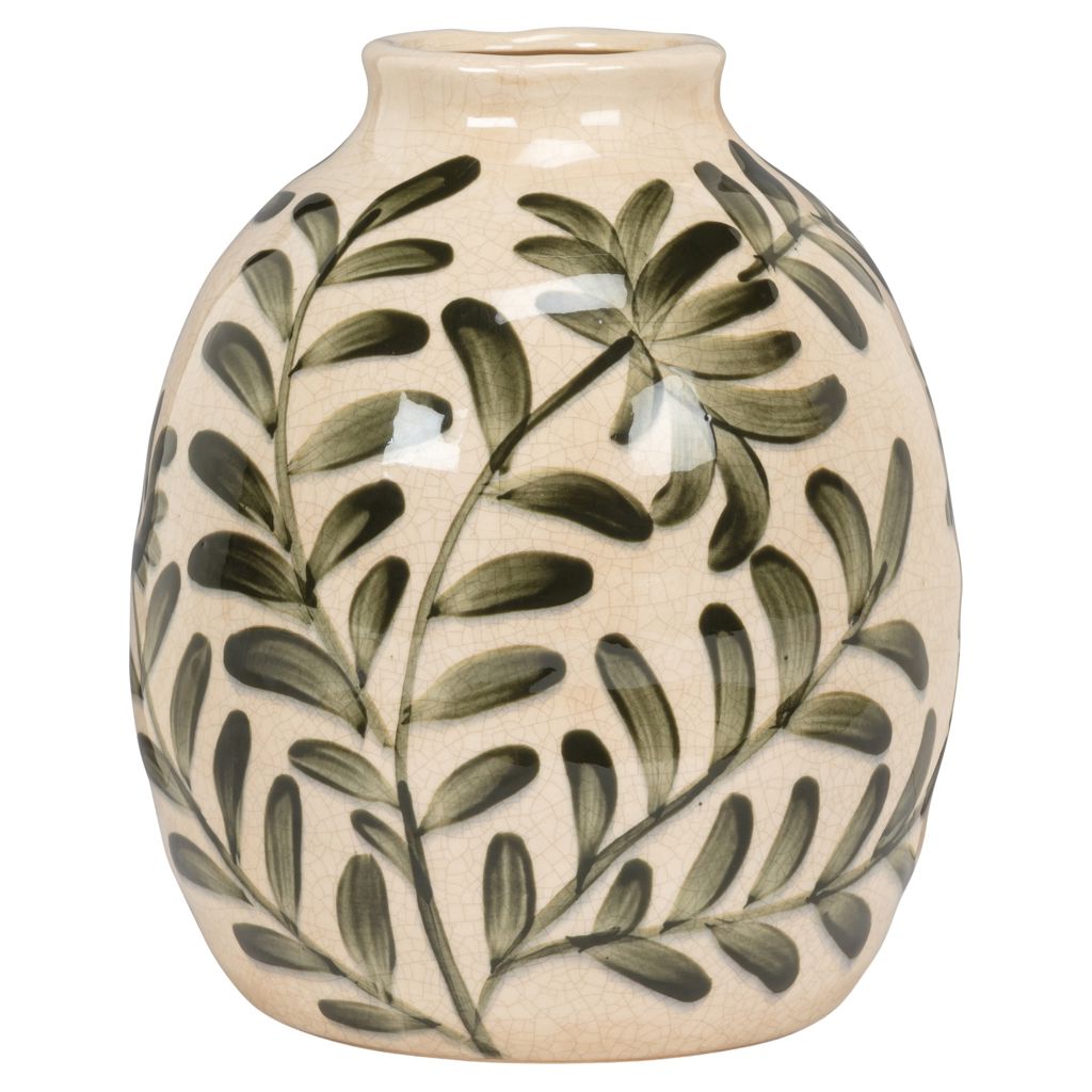 Apportez une touche d'authenticité à votre décor avec ce vase en grès peint à la main aux courbes douces et organiques.