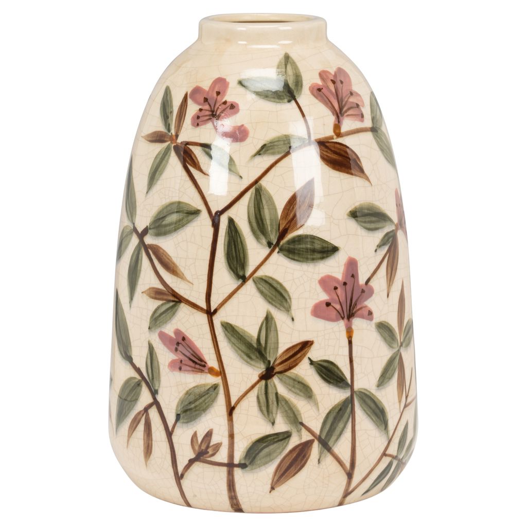 Créez un impact visuel saisissant avec ce vase en grès orné de fleurs délicatement peintes à la main.