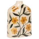 Faites sensation avec ce vase plat en grès aux généreux motifs floraux jaunes peints à la main.