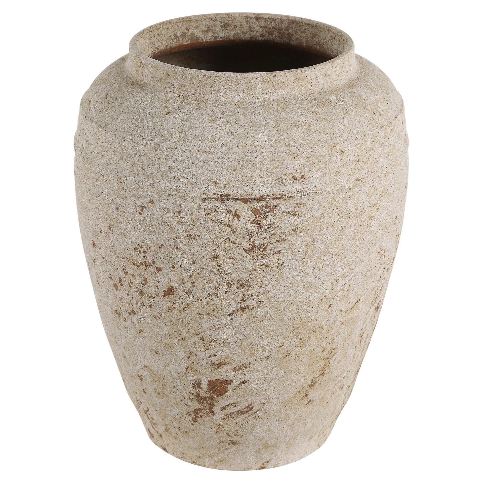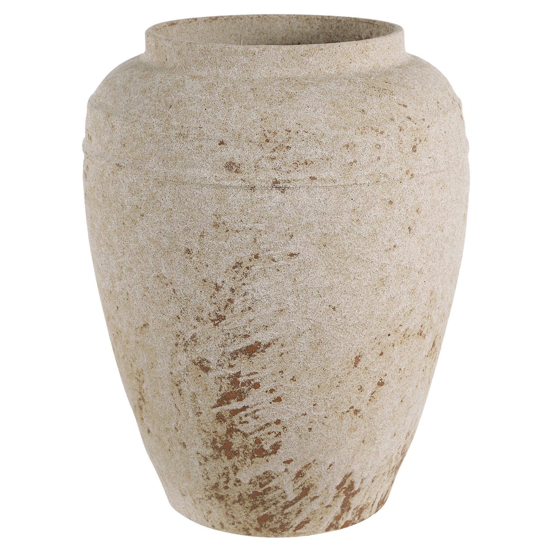 La terre cuite s'anime dans ce vase décoratif beige antique texturé.