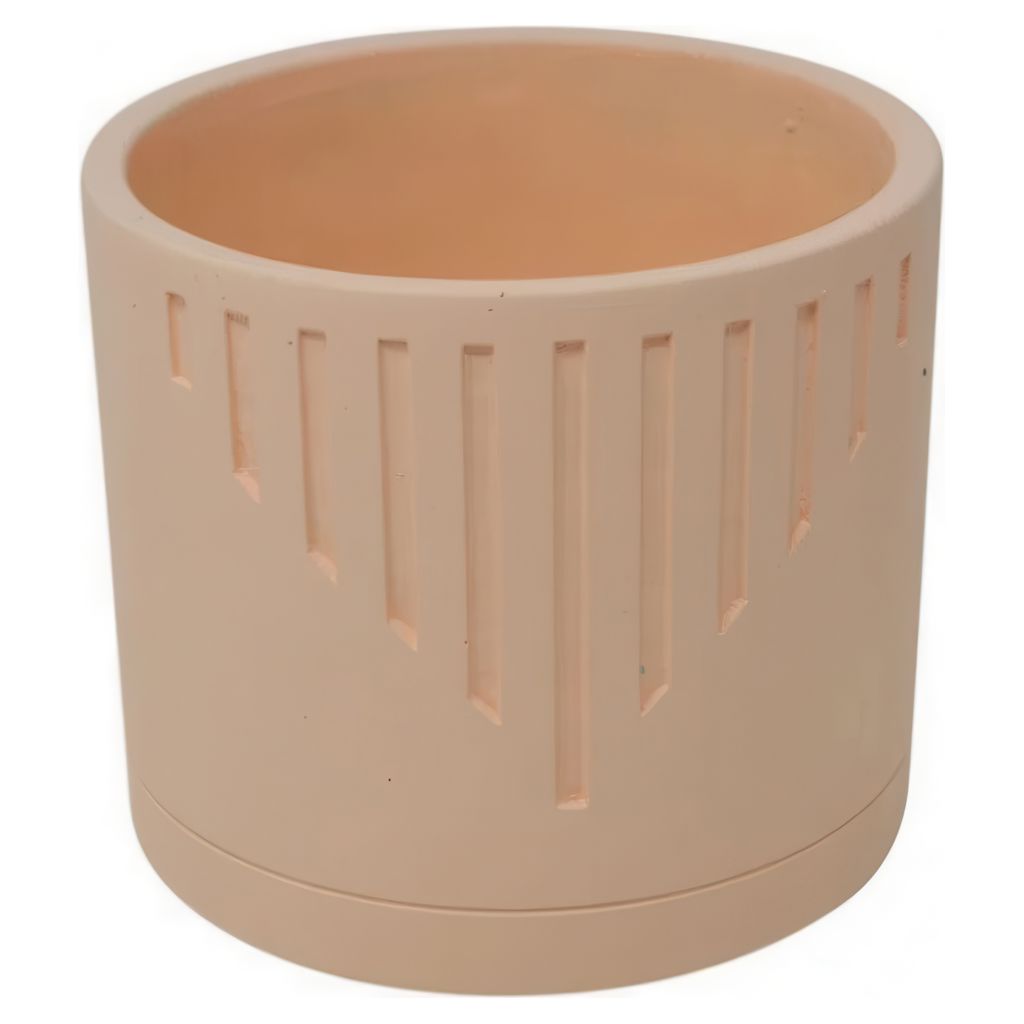 Pot de fleurs cylindrique en céramique rose poudré, au design minimaliste et épuré.