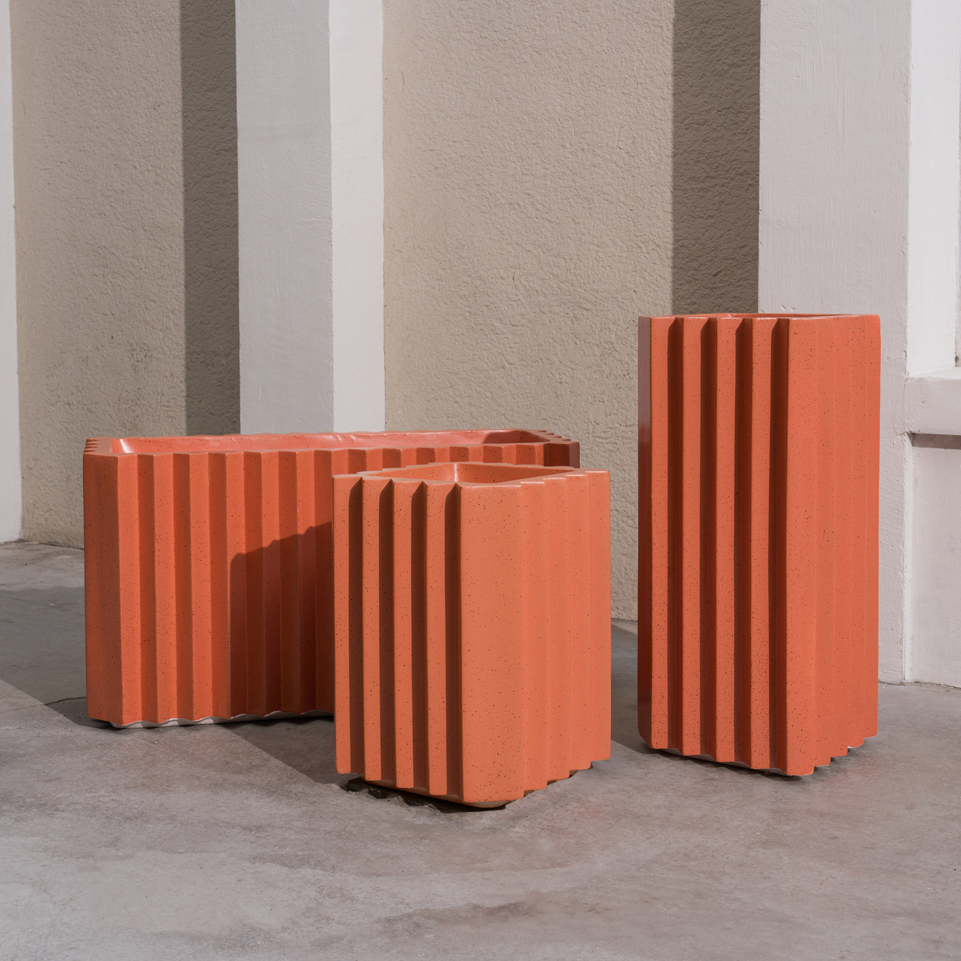 Le Pot Zigzag petit au fini terracotta mat de 20 po