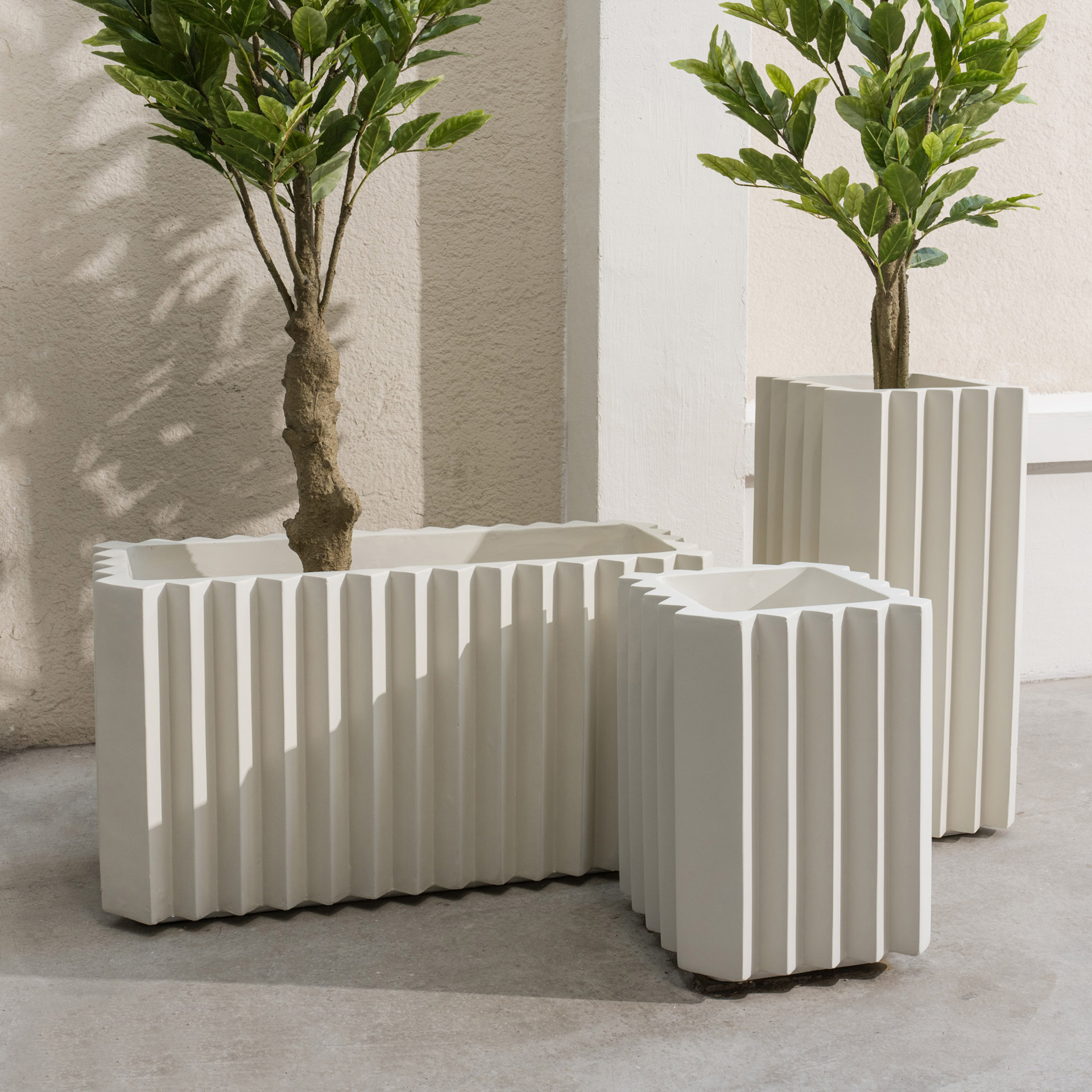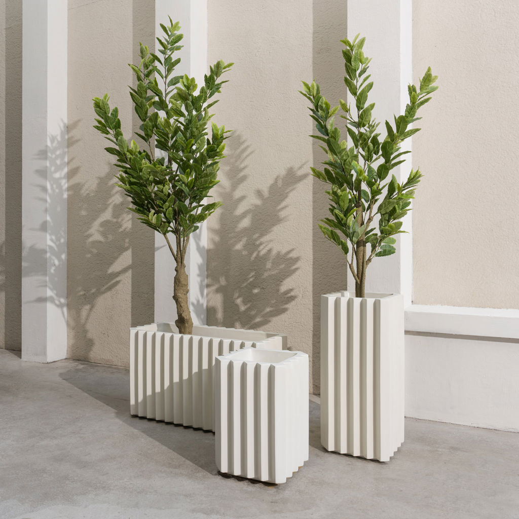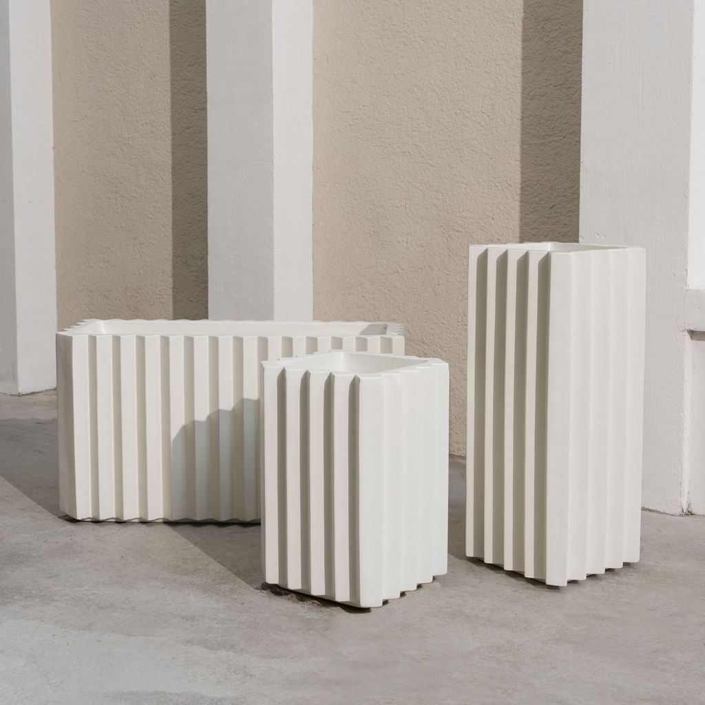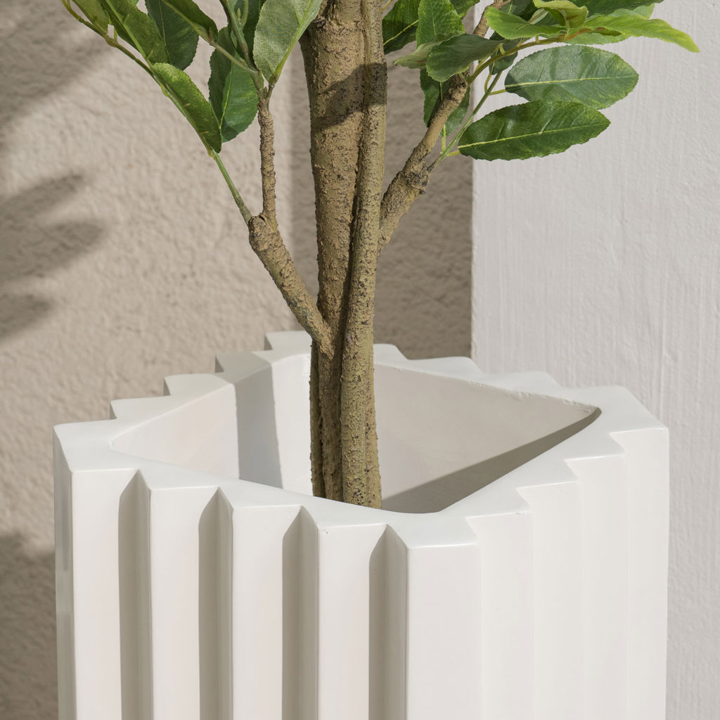 Le Pot Zigzag moyen au fini beige mat de 30 po