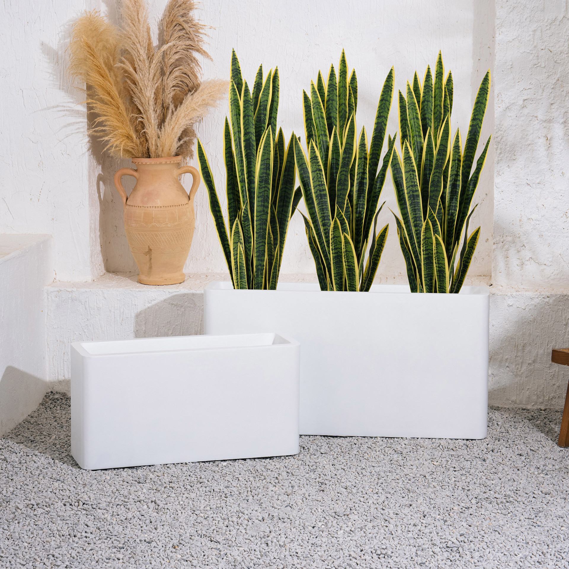 Le pot Flowerbox Petit au fini blanc mat de 15 po