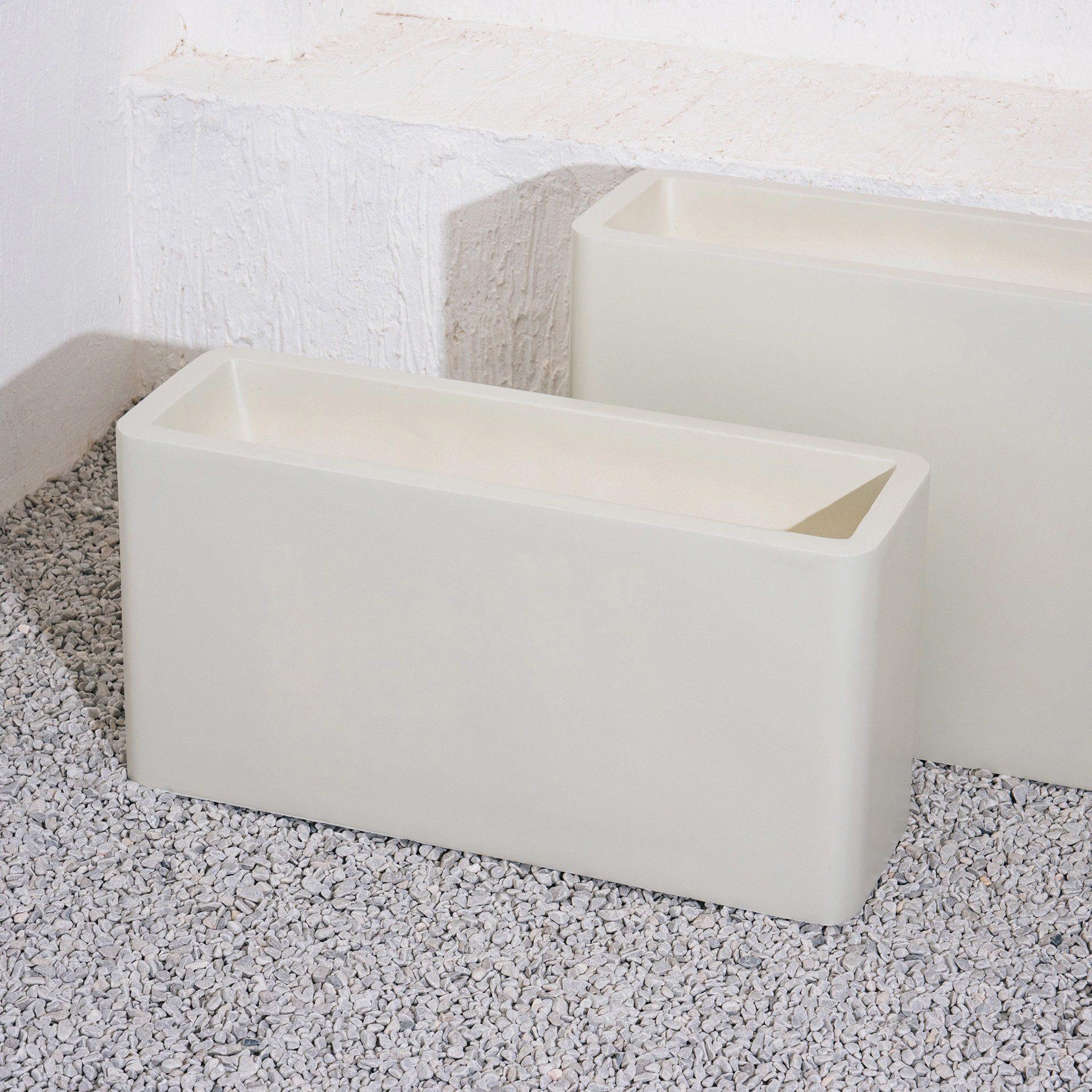 Le pot Flowerbox Grand au fini beige mat de 20 po