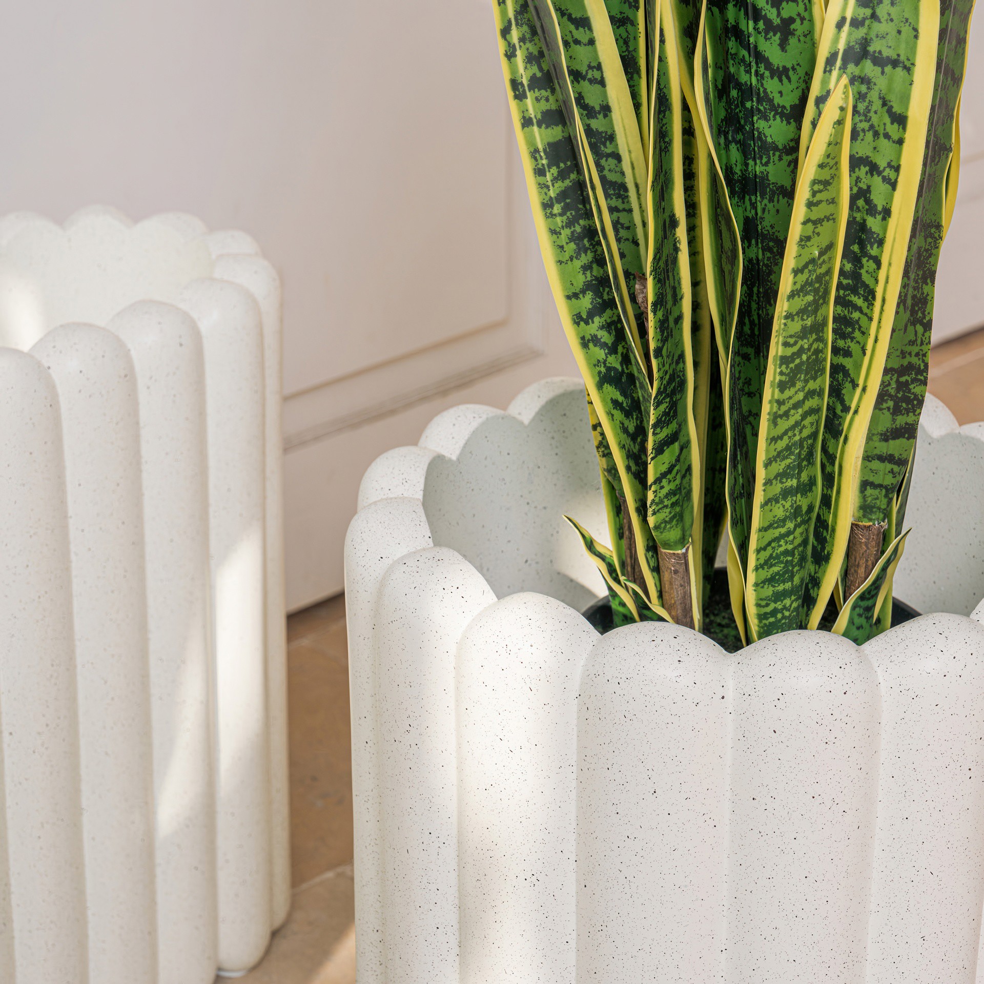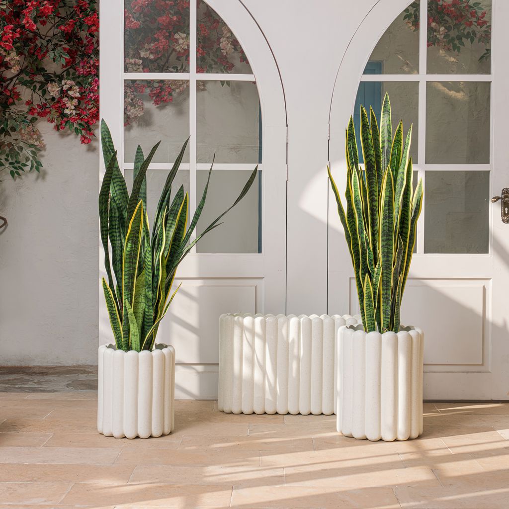 Le pot Tiramisu Moyen au fini granite blanc de 20 po