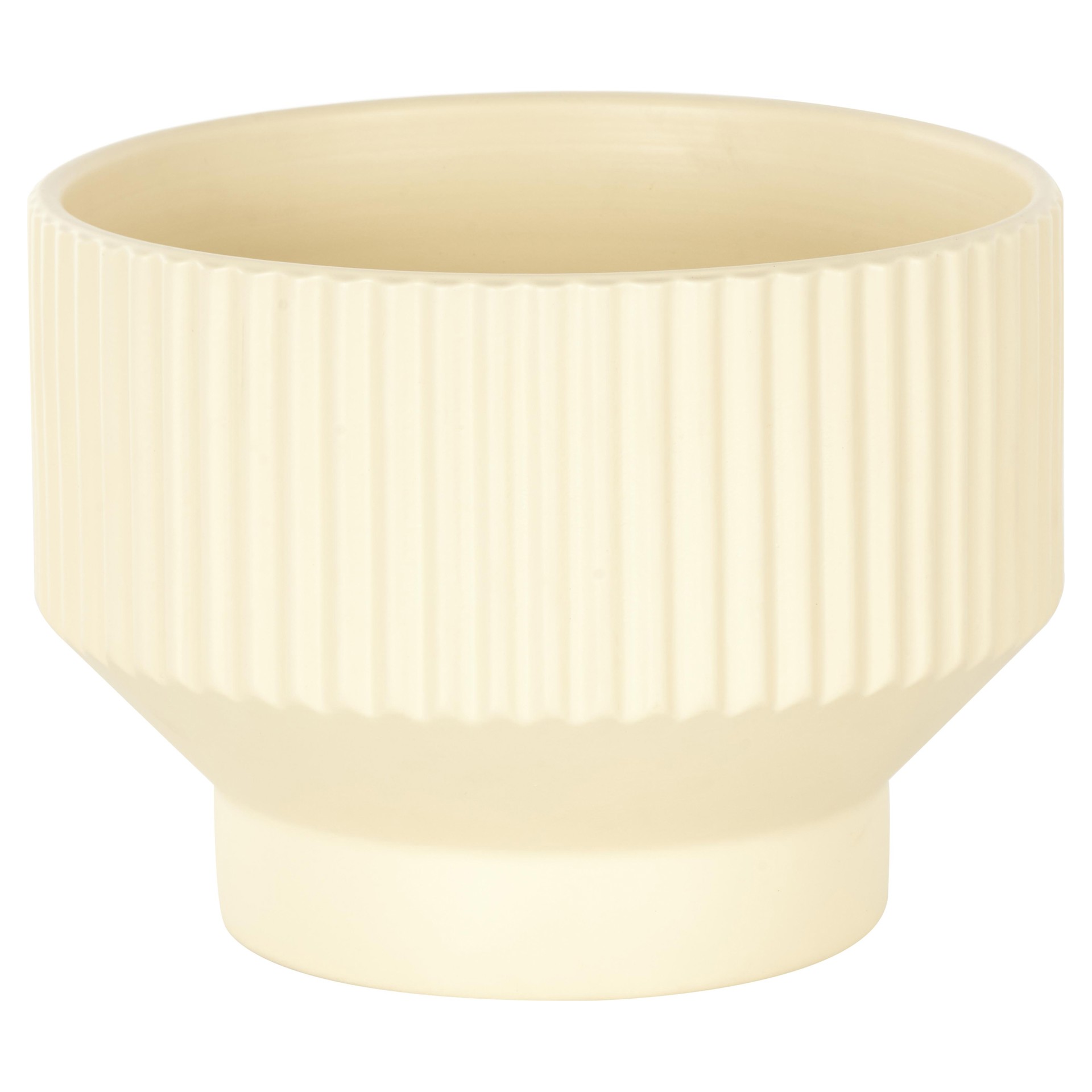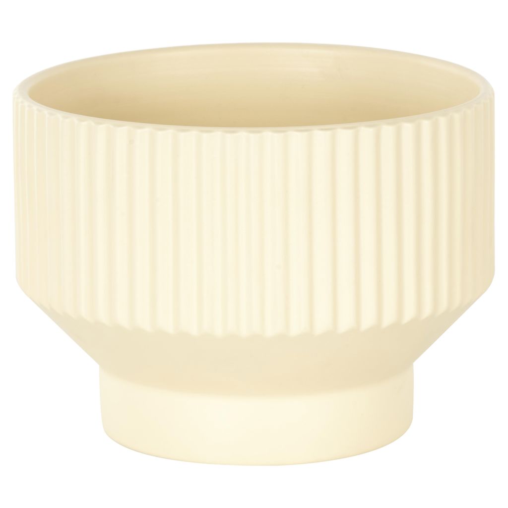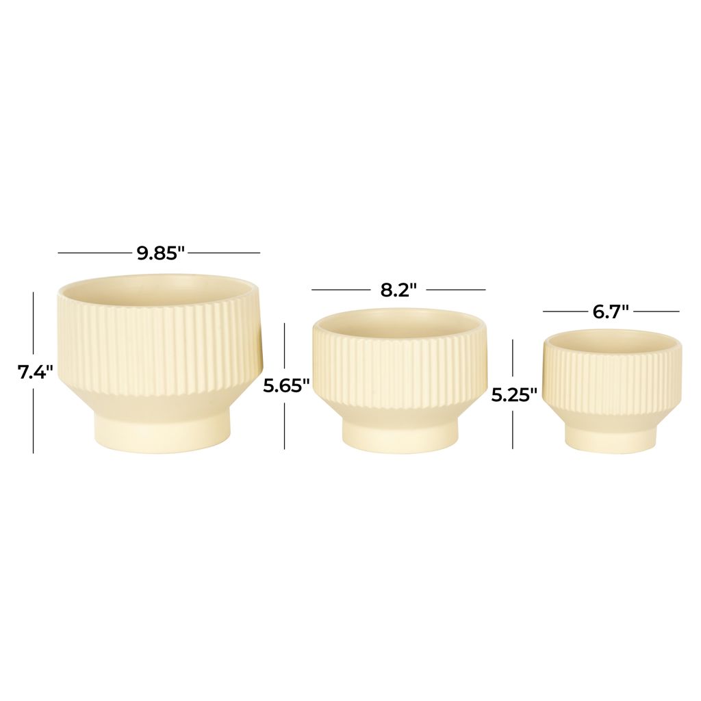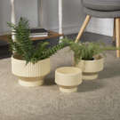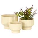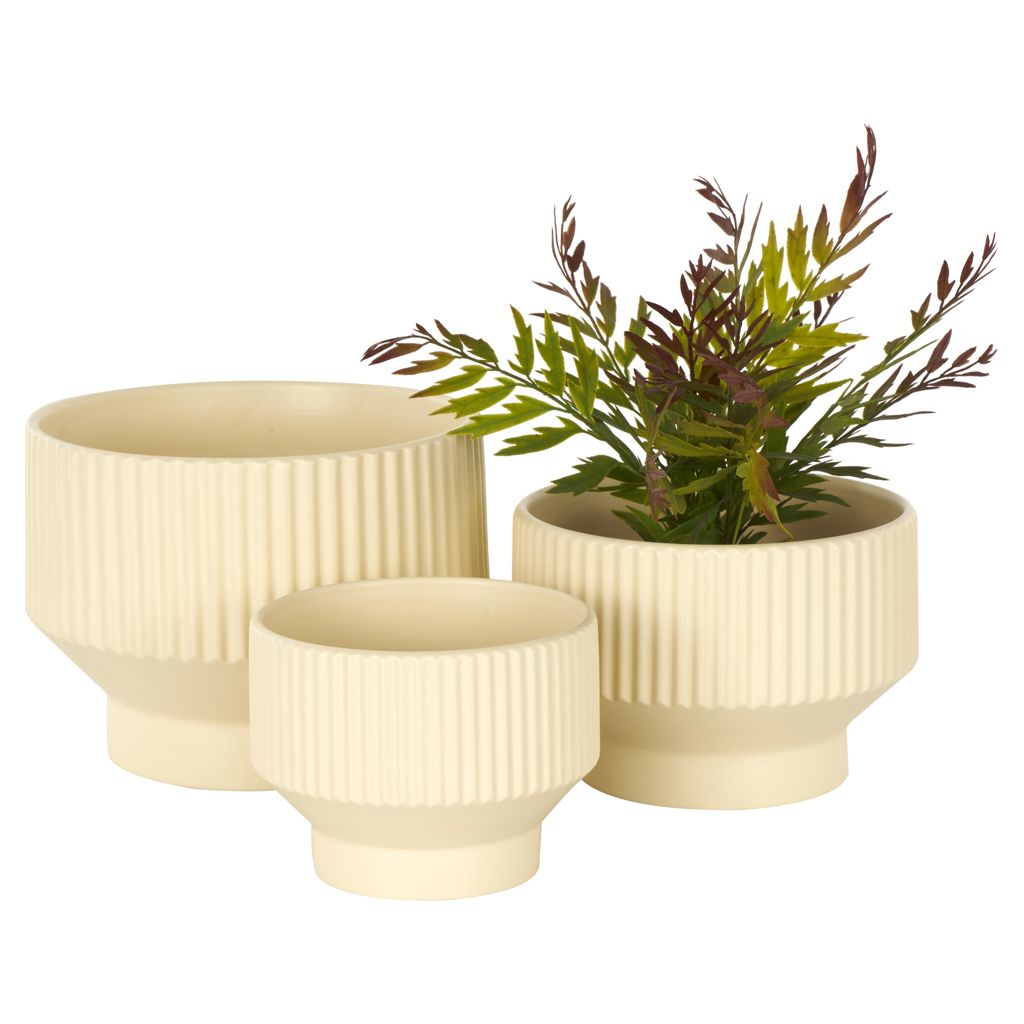 L'ensemble de cache-pots se caractérise par sa couleur crème élégante et sa finition mate lisse. Il présente des rainures linéaires et des bases effilées, ce qui lui confère un attrait esthétique unique.