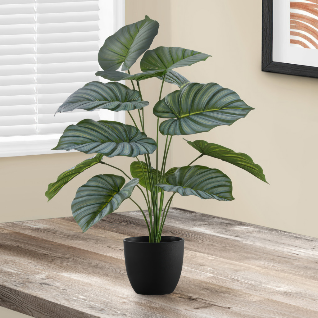 Apportez une touche de nature à votre pièce avec notre magnifique plante calathée artificielle qui mesure 24 po de haut, installée dans un pot noir de 5 po.