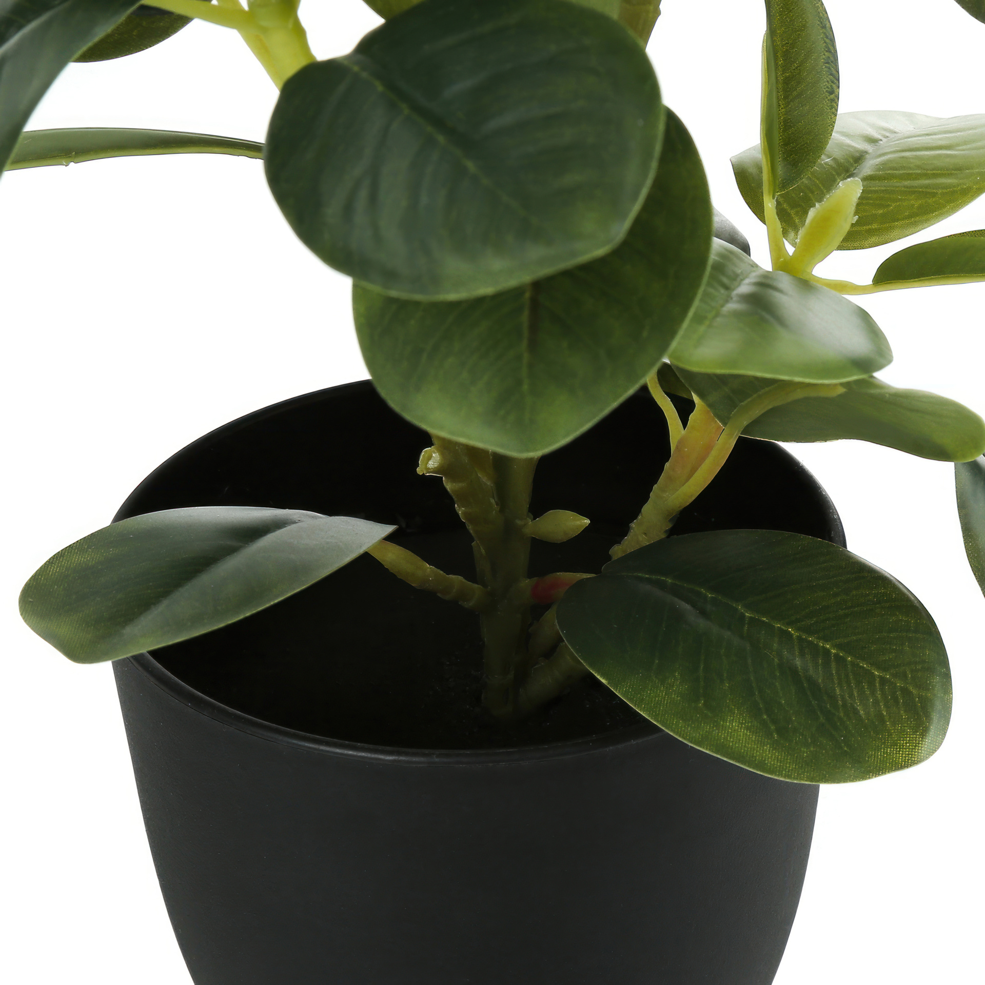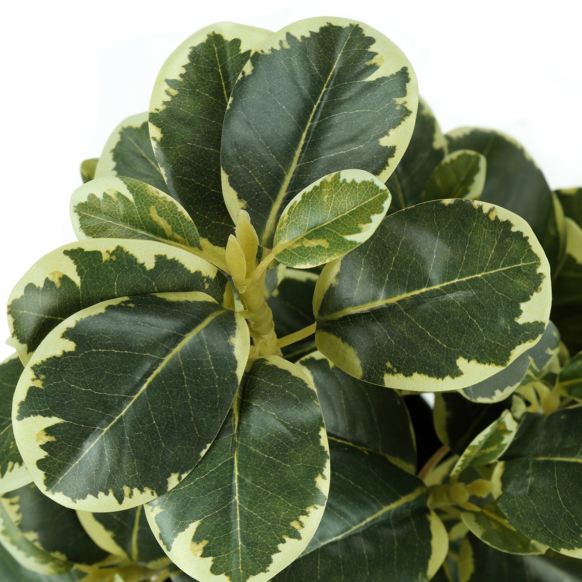 Ces plantes artificielles de ficus durables et respectueuses de l'environnement sont fermement cimentées dans de simples pots noirs de 4"ne nécessitant pas d'arrosage.