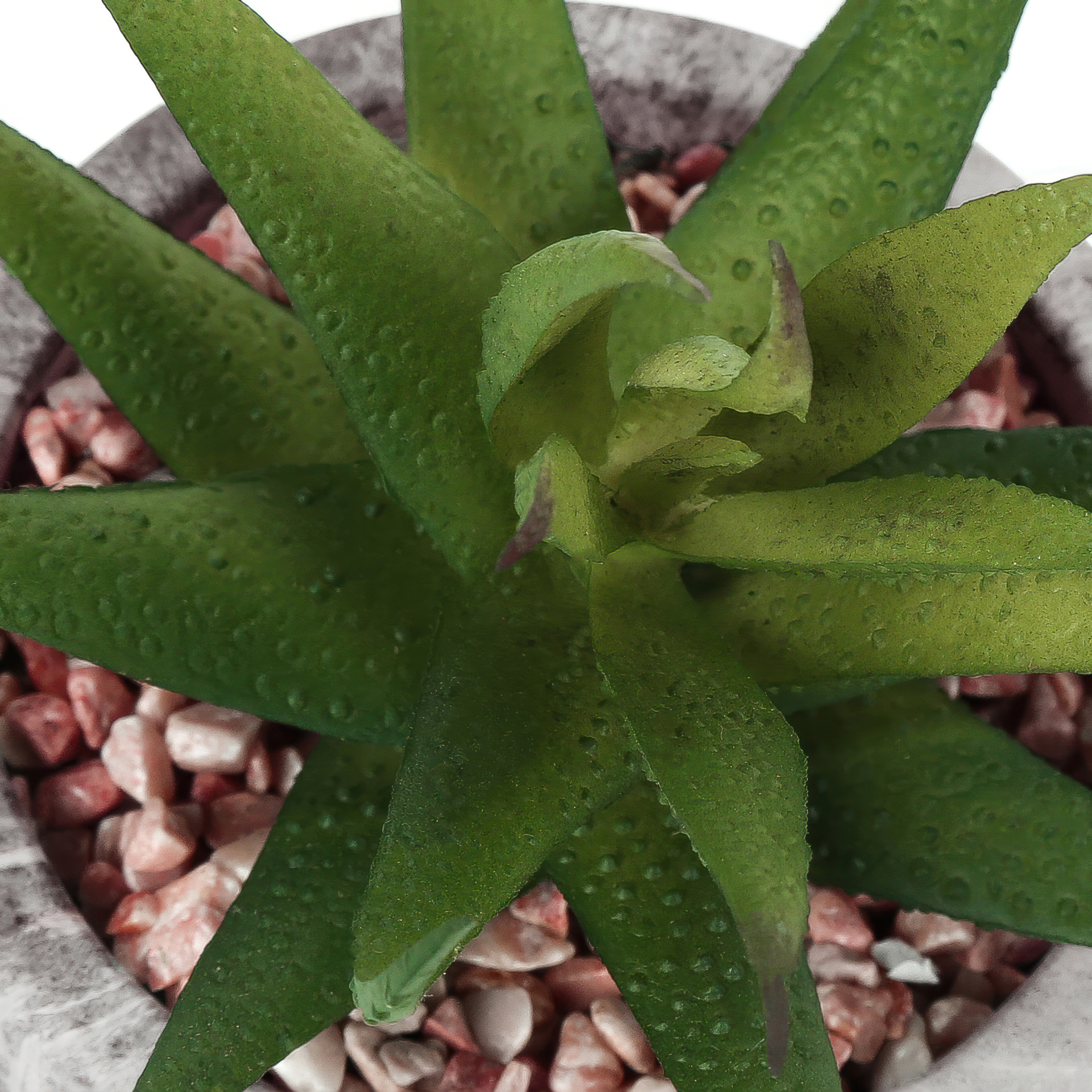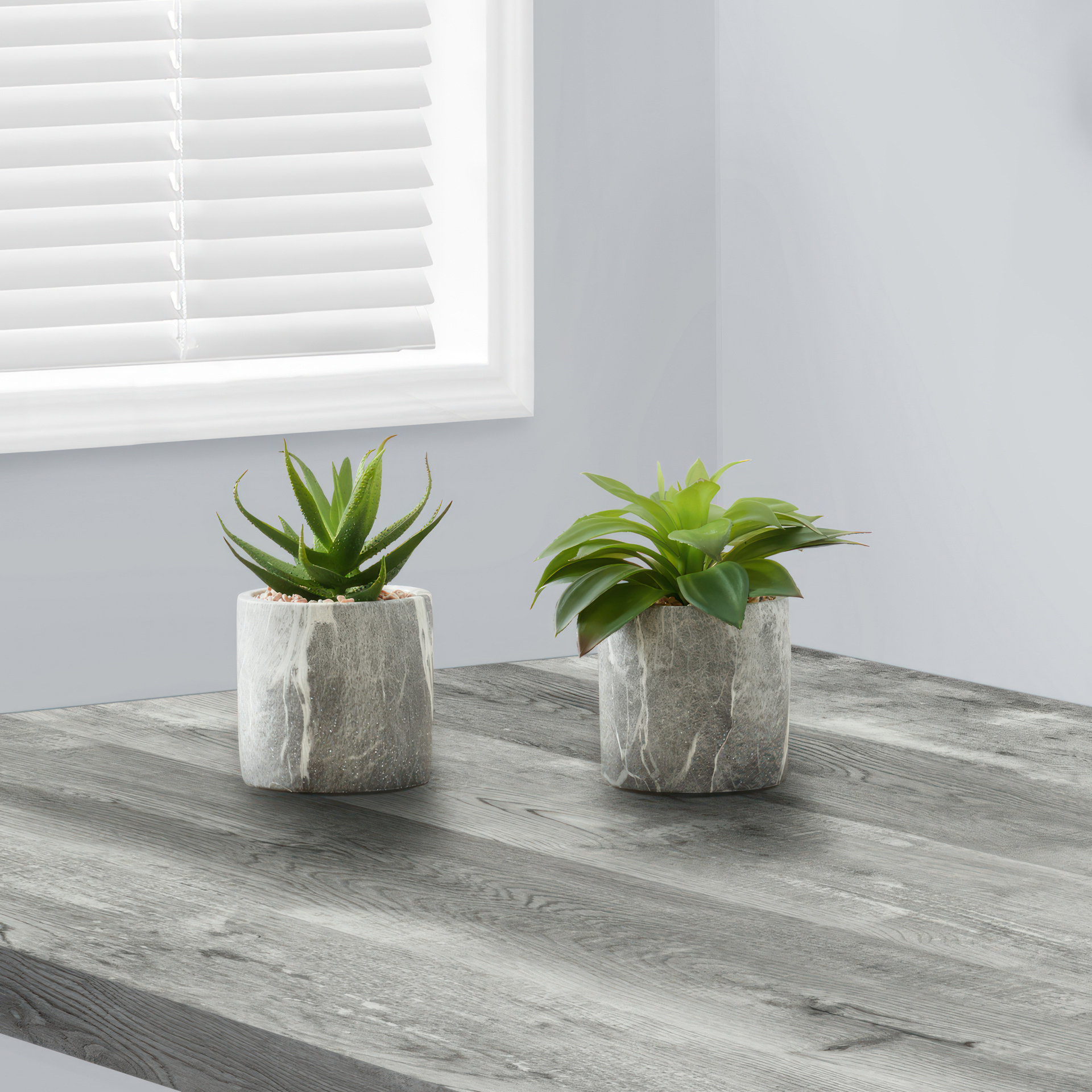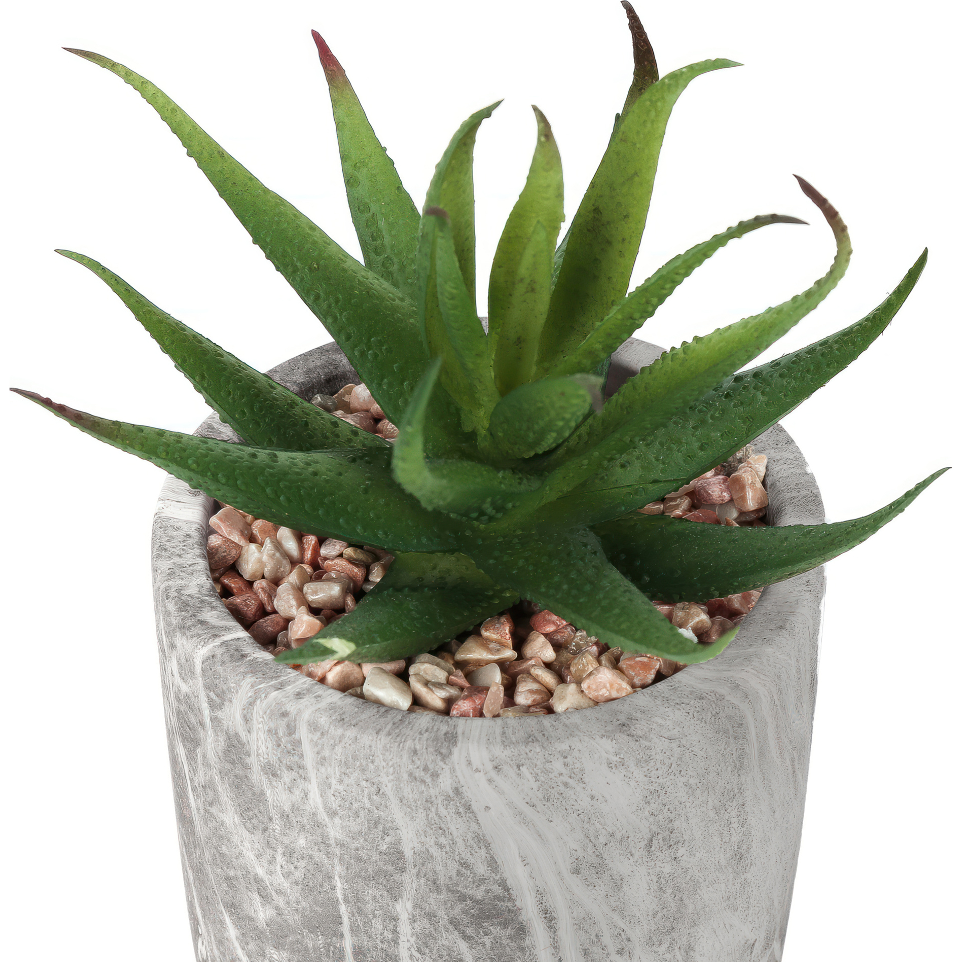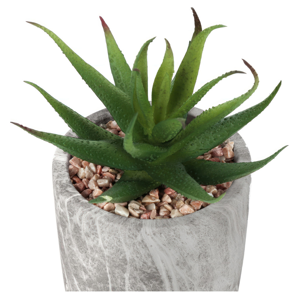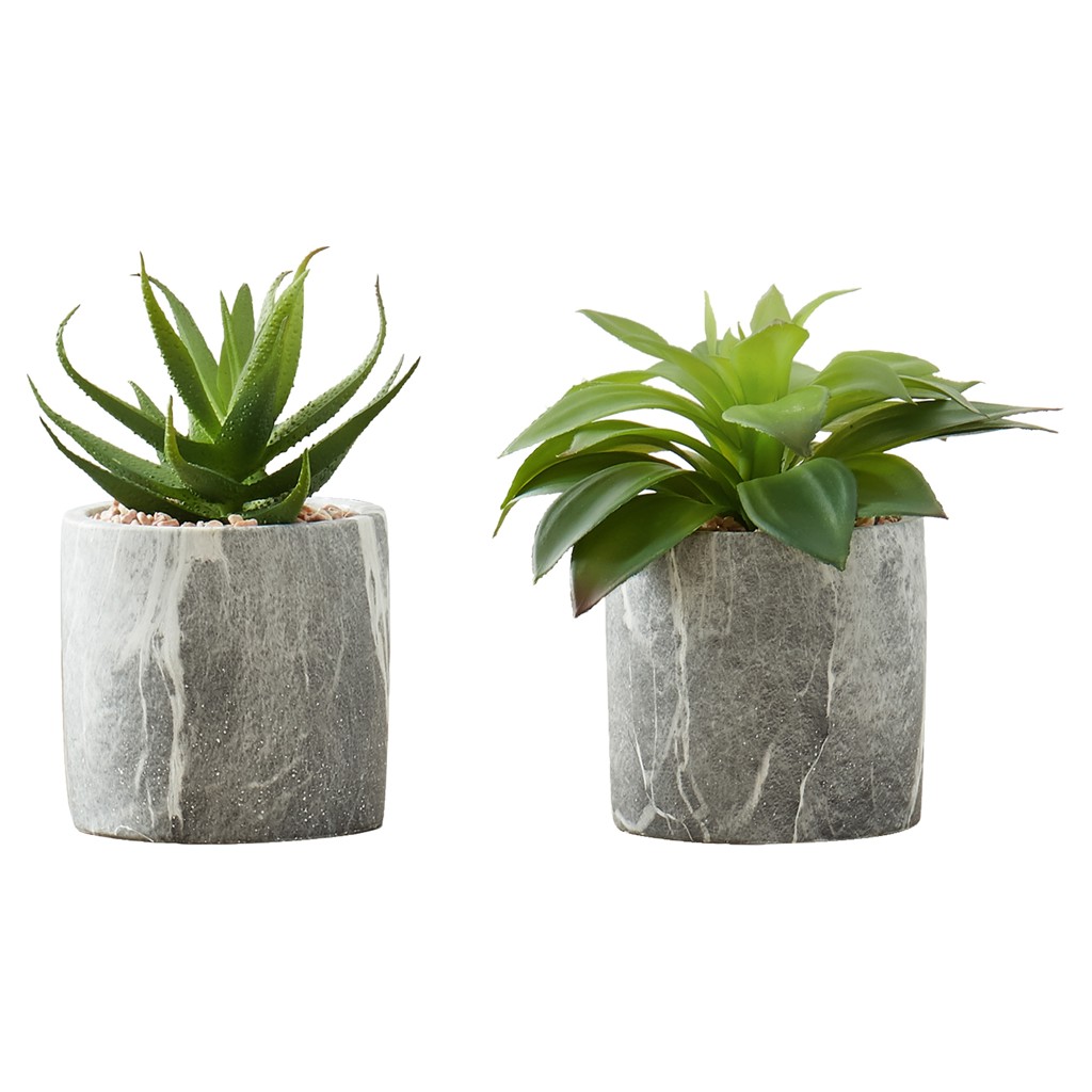 Ce somptueux ensemble comprend deux Succulentes factices de 7 po de haut nichées dans des pots de ciment de 4 po ayant un fini de marbre gris, et surmontées de gravillons pour un look réaliste sans effort!