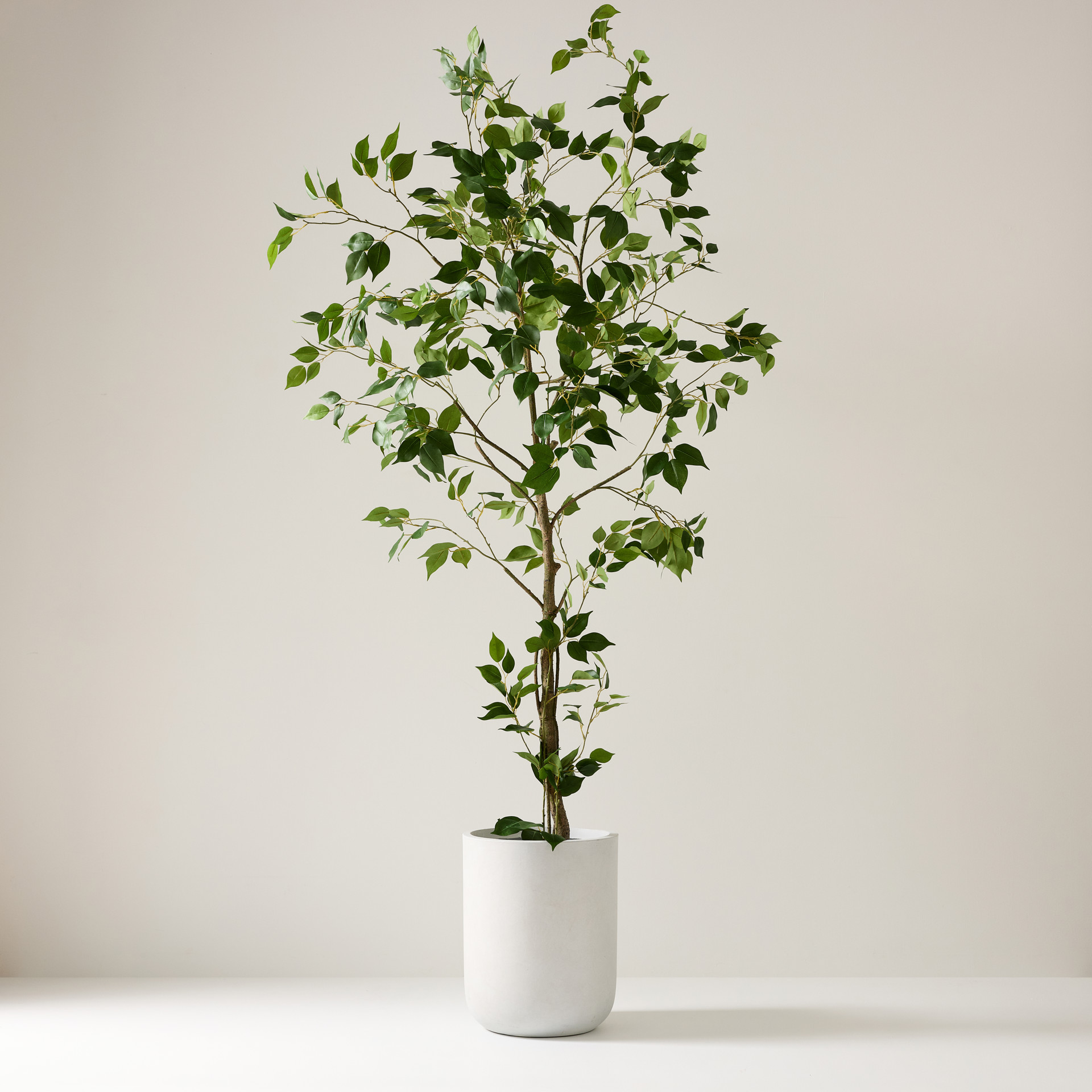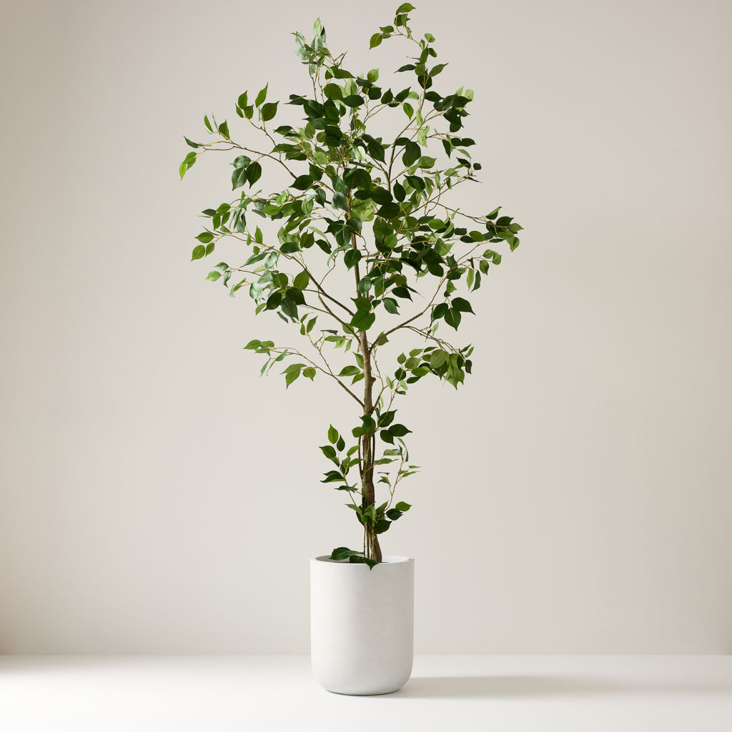 Magnifique et réaliste plante artificielle imitation ficus de 82 po de hauteur. Elle ajoutera une touche chaleureuse et élégante à votre décor.