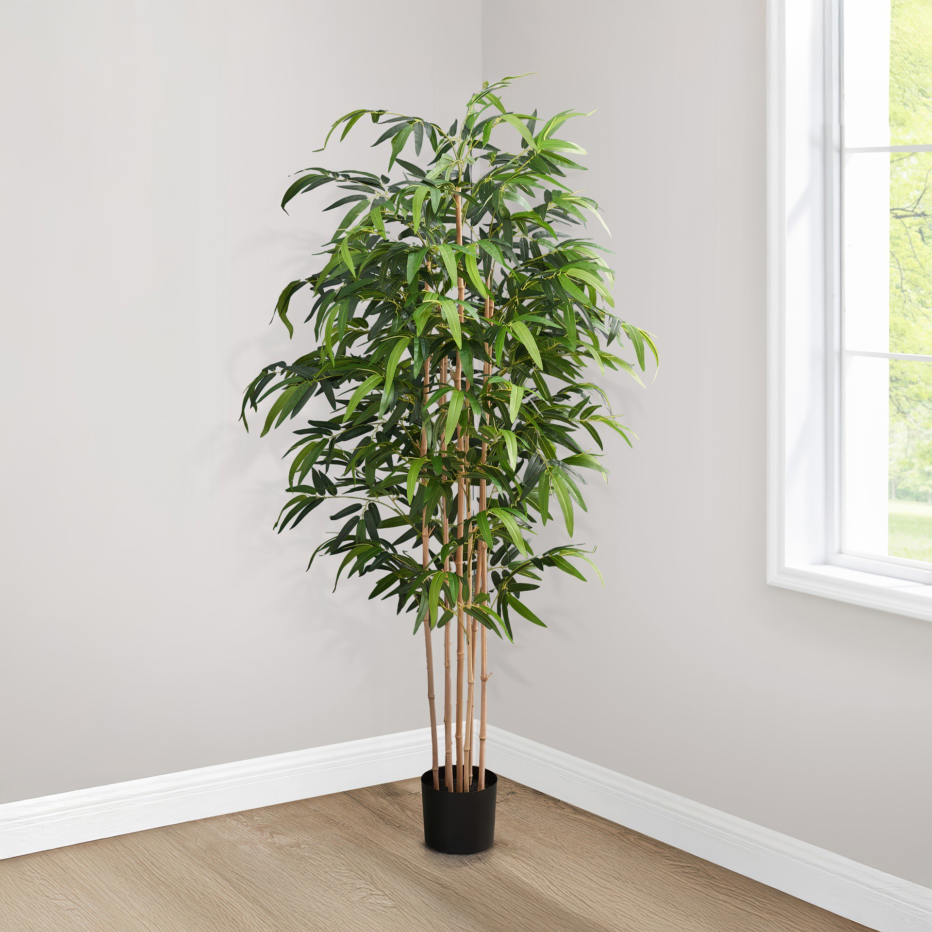 Vous cherchez quelque chose d'élégant et de naturel pour embellir la décoration de votre maison ou bureau? Cet arbre artificiel en bambou de 83" de hauteur, avec des troncs multiples à l'aspect réaliste, dans un élégant pot noir de 8", est le choix parfait!