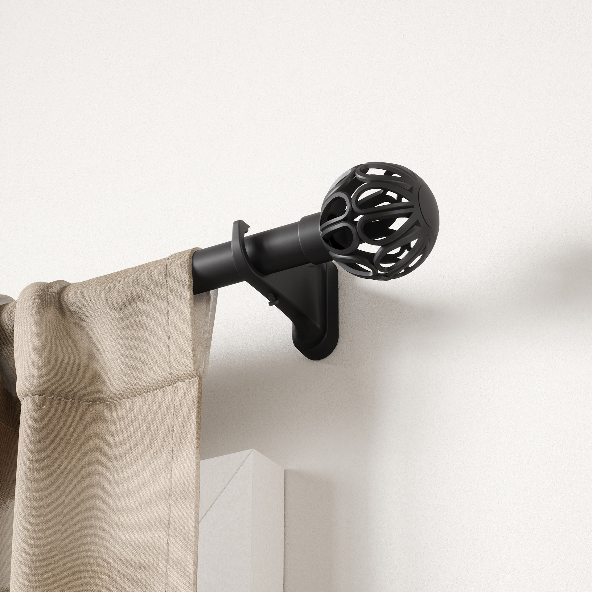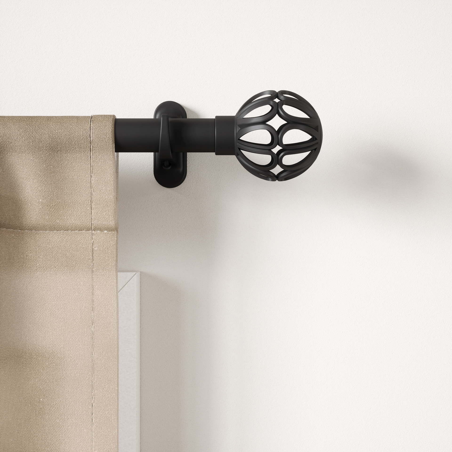La tringle à rideaux Aria Cage est dotée de goujons en forme d'orbe ajourée sculpturale associés à une tringle cylindrique élégante, elle apporte un intérêt architectural subtil à votre espace.