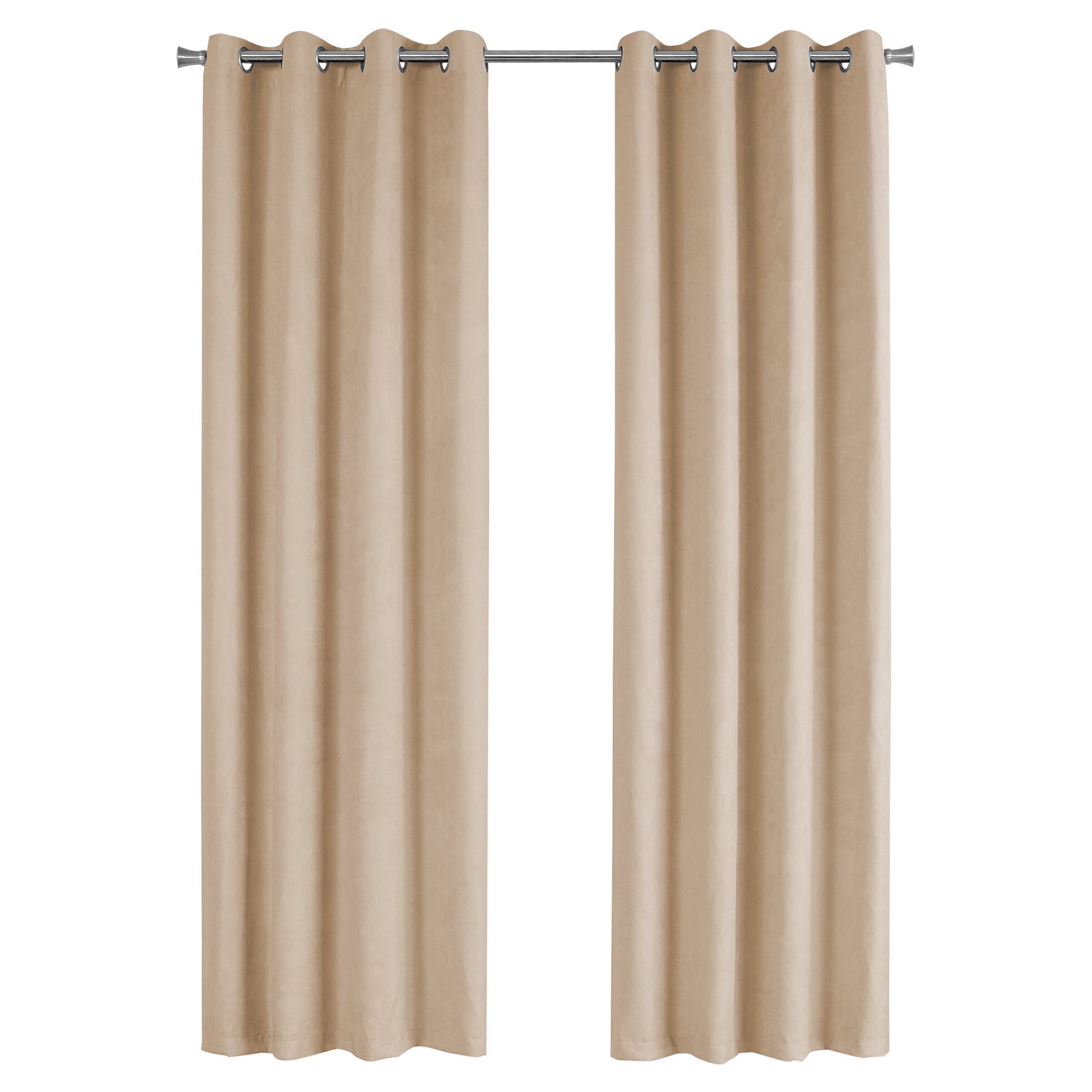 Cet ensemble de 2 rideaux beiges aux lignes épurées peut être placé dans un salon, une chambre ou une salle à manger.