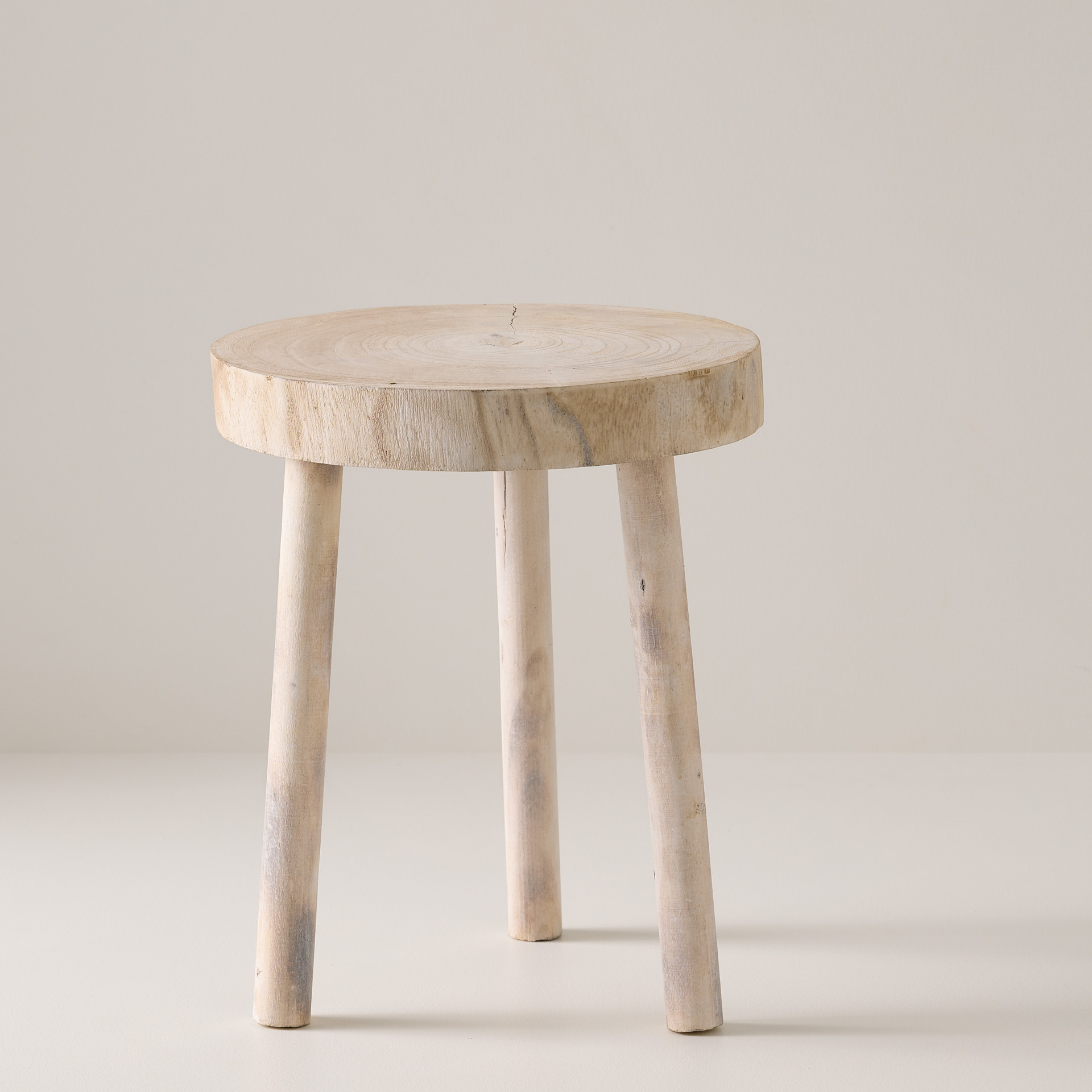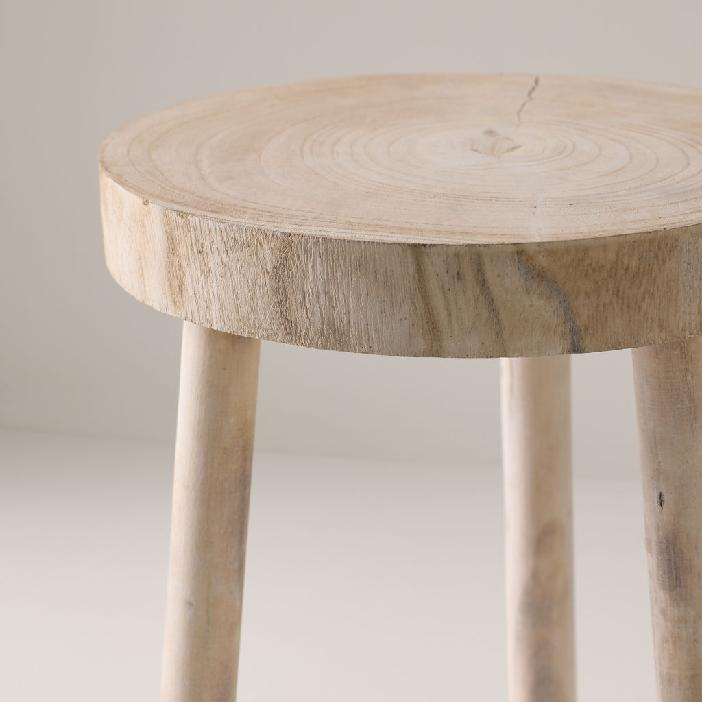 Grand banc en bois de Paulownia délavé blanc.