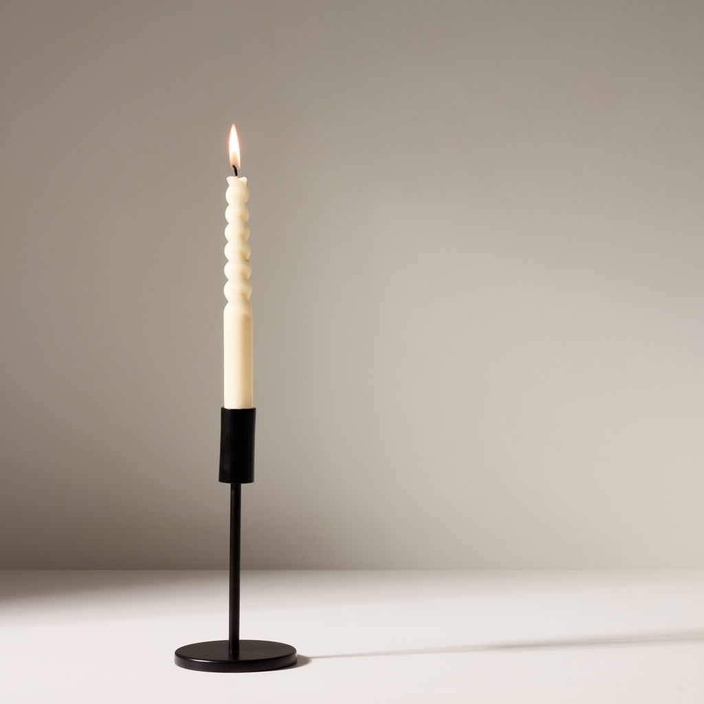 Fabriquée avec précision, sa structure minimaliste crée un contraste visuel saisissant avec la lumière vacillante des bougies.