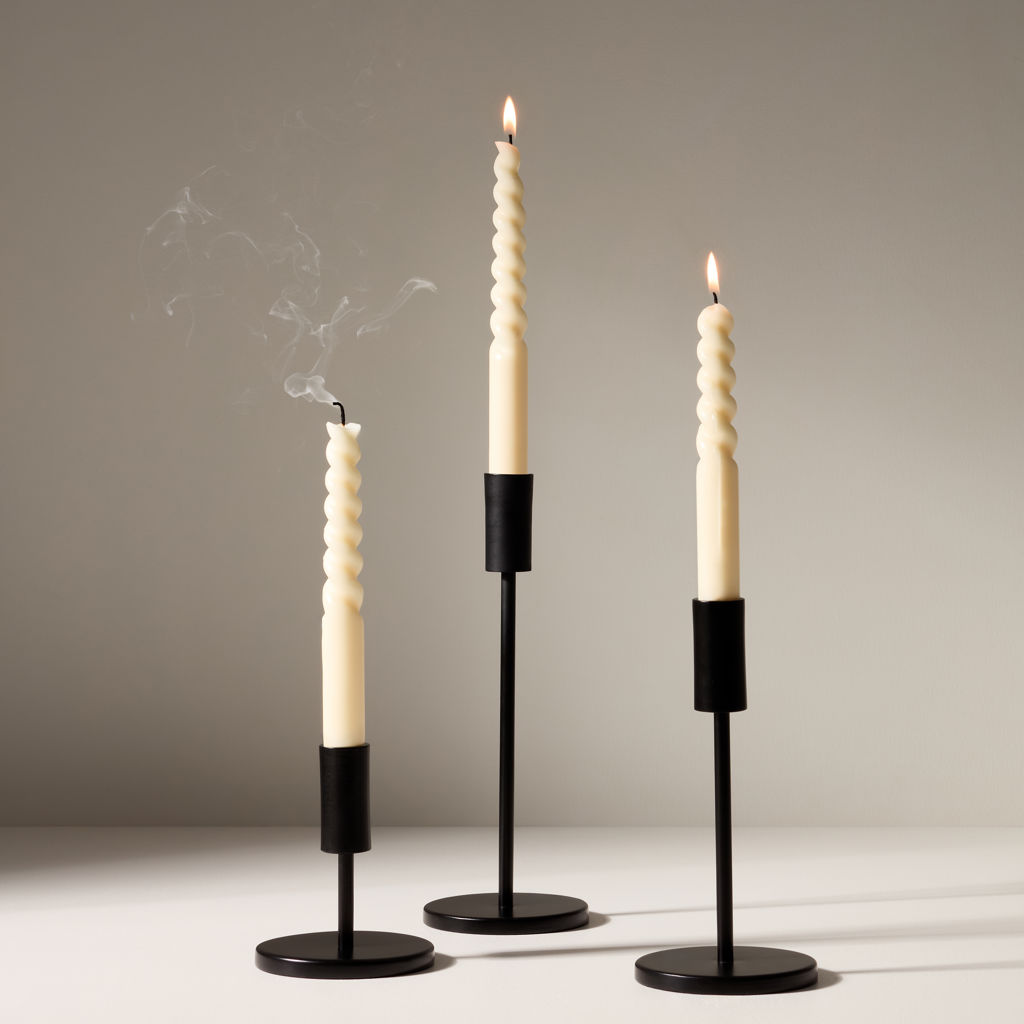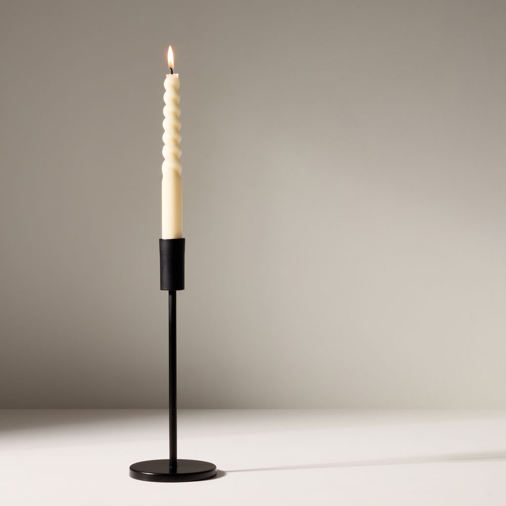 Fabriquée avec précision, sa structure minimaliste crée un contraste visuel saisissant avec la lumière vacillante des bougies.