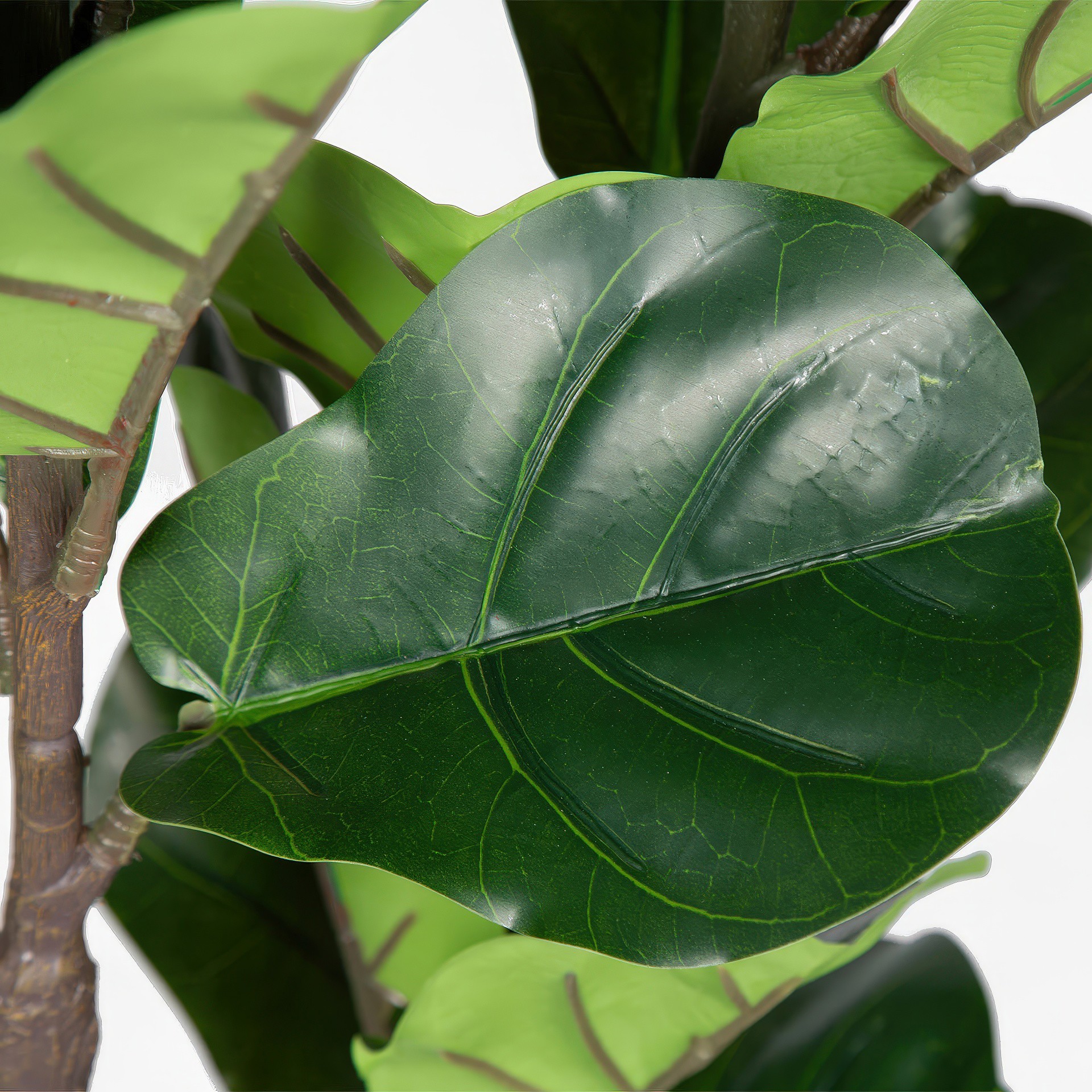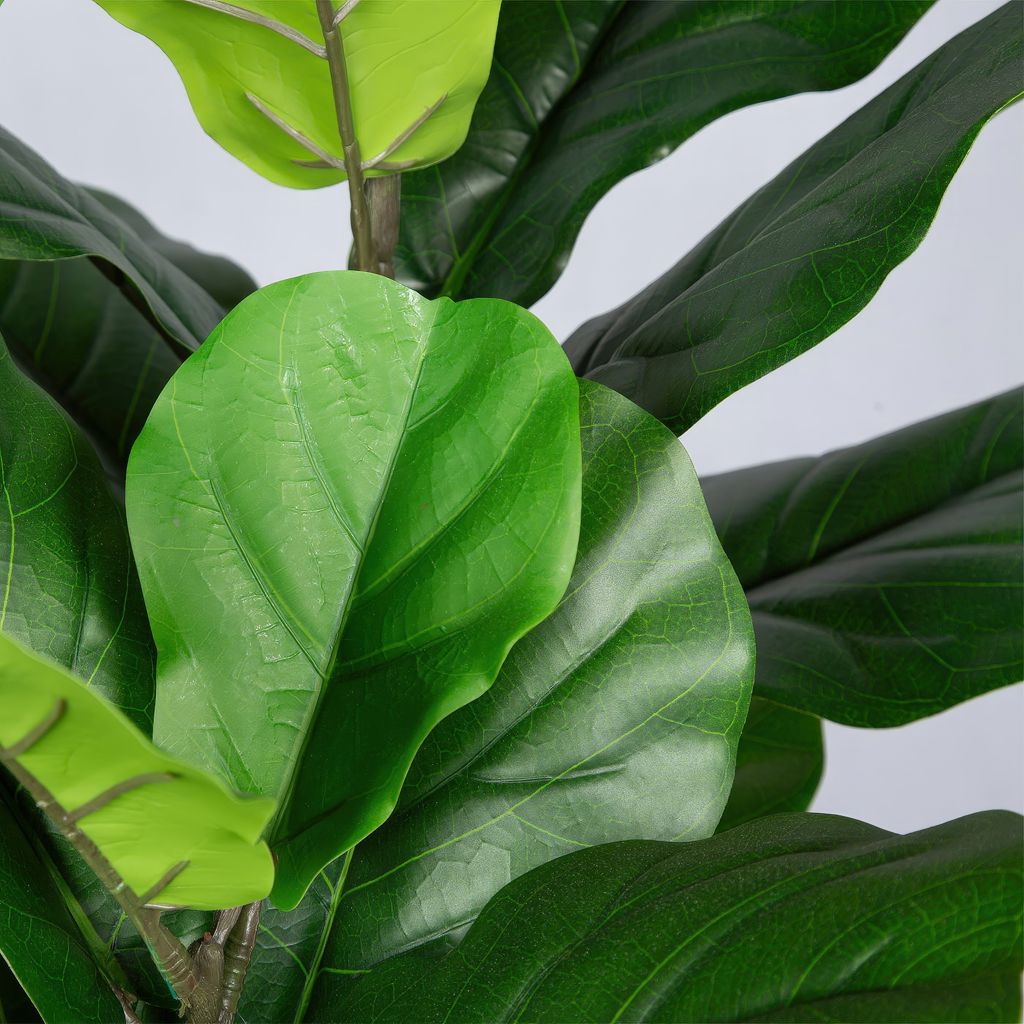 Le Figuier Lyre artificiel dans un pot de fibre de verre blanc de 72 po de hauteur est une plante éternelle abordable aux allures réalistes qui étanchera votre soif de beauté.