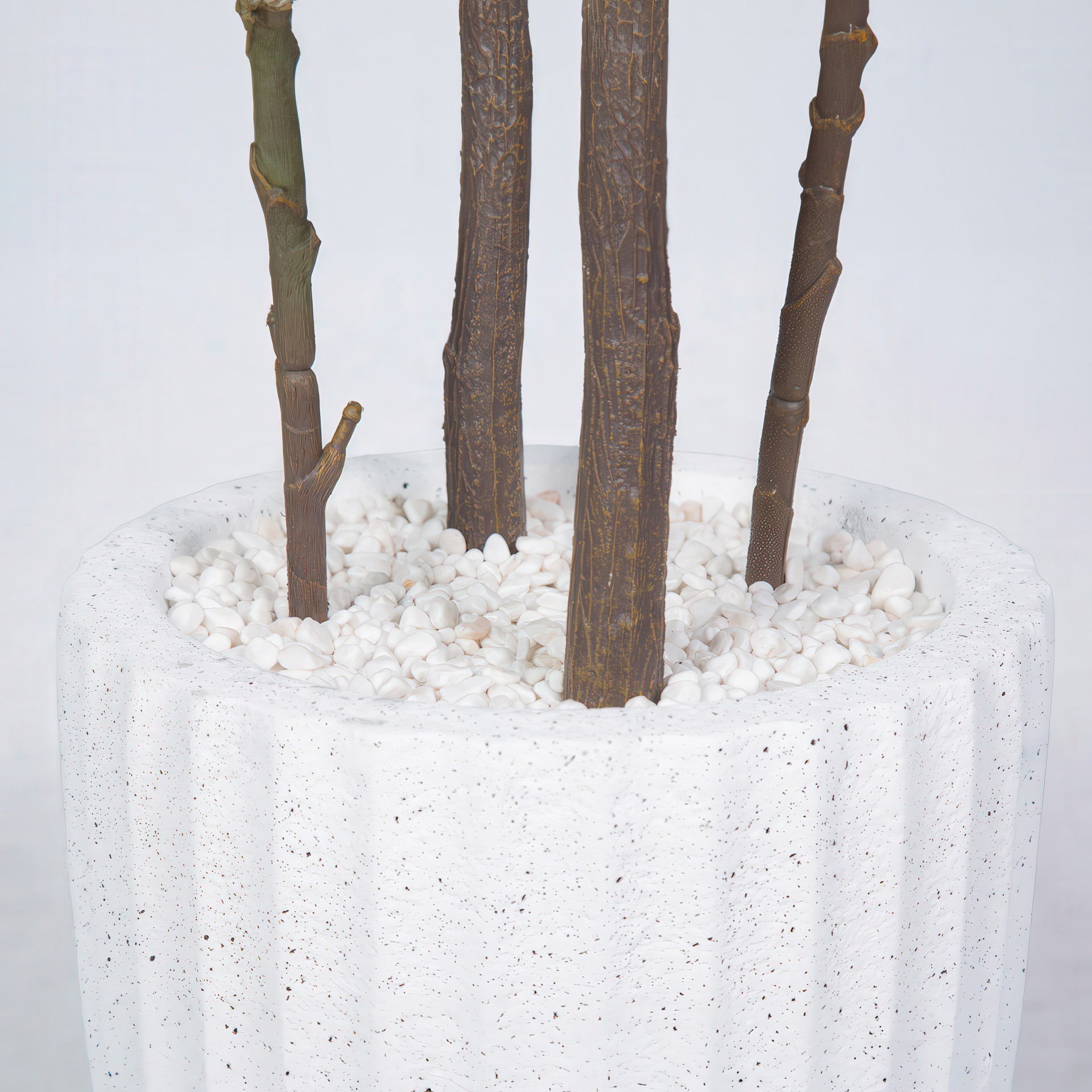 Combiné à un élégant pot blanc vagué en fibre de verre, ce duo est la pièce d'accent parfaite pour tous les décors de la maison au bureau.