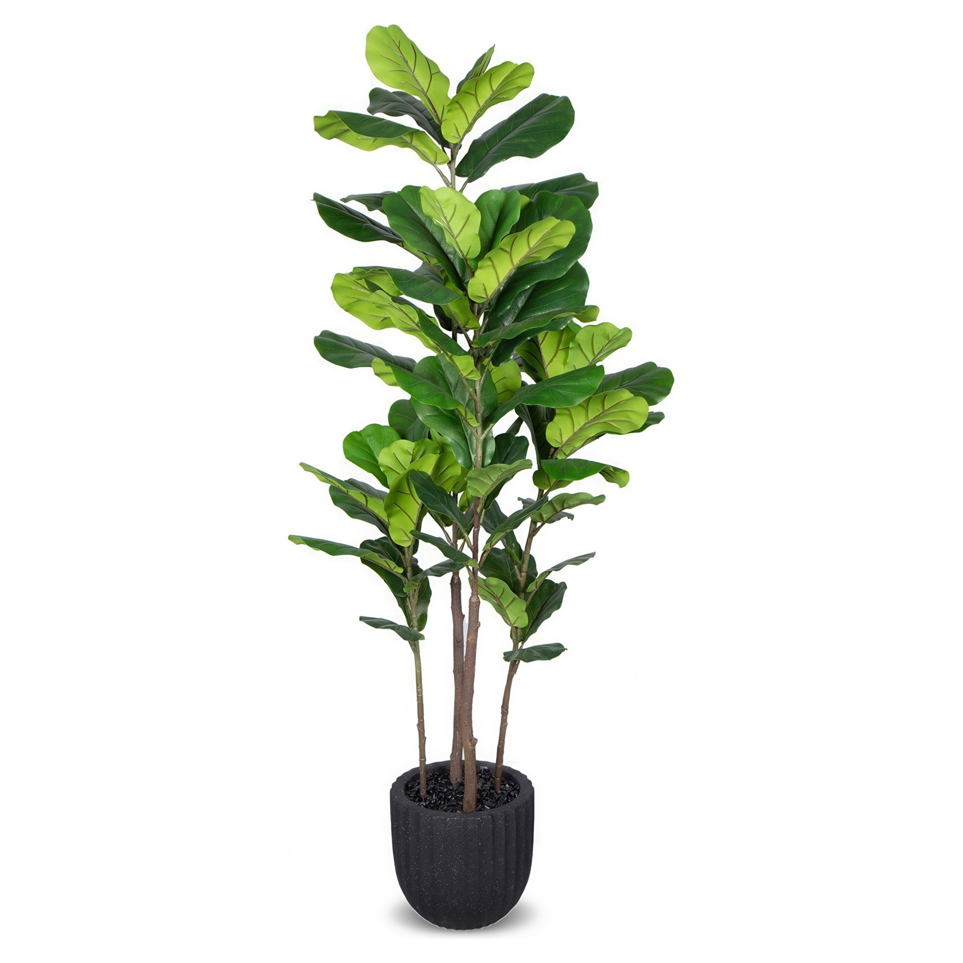 Le Figuier Lyre artificiel dans un pot de fibre de verre noir de 72po de hauteur est une plante éternelle abordable aux allures réalistes qui étanchera votre soif de beauté.