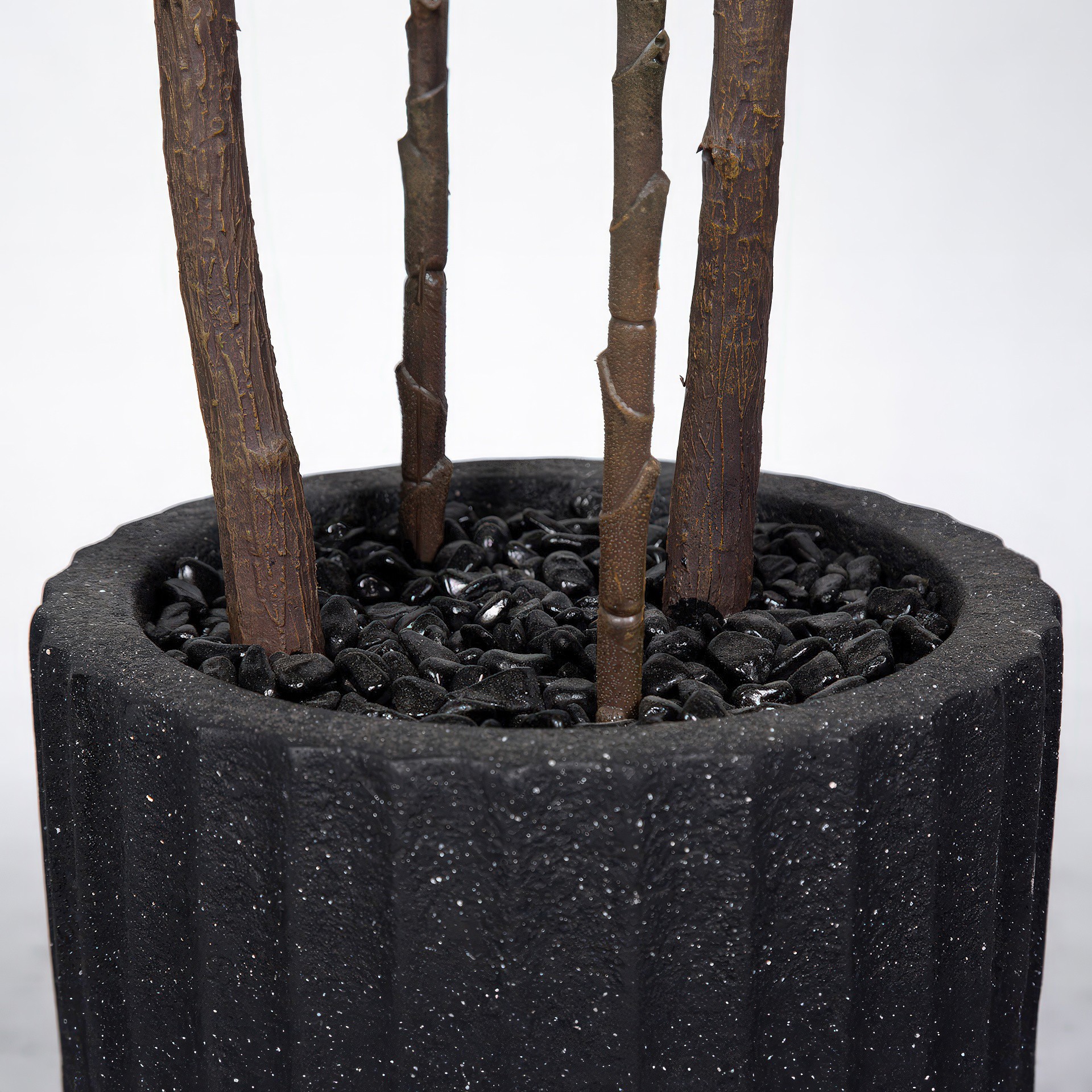 Combiné à un élégant pot noir vagué en fibre de verre, ce duo est la pièce d'accent parfaite pour tous les décors de la maison au bureau.