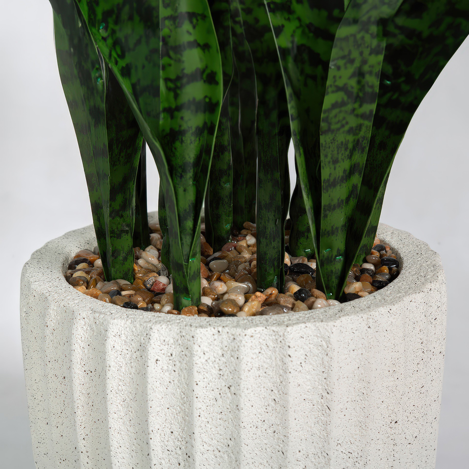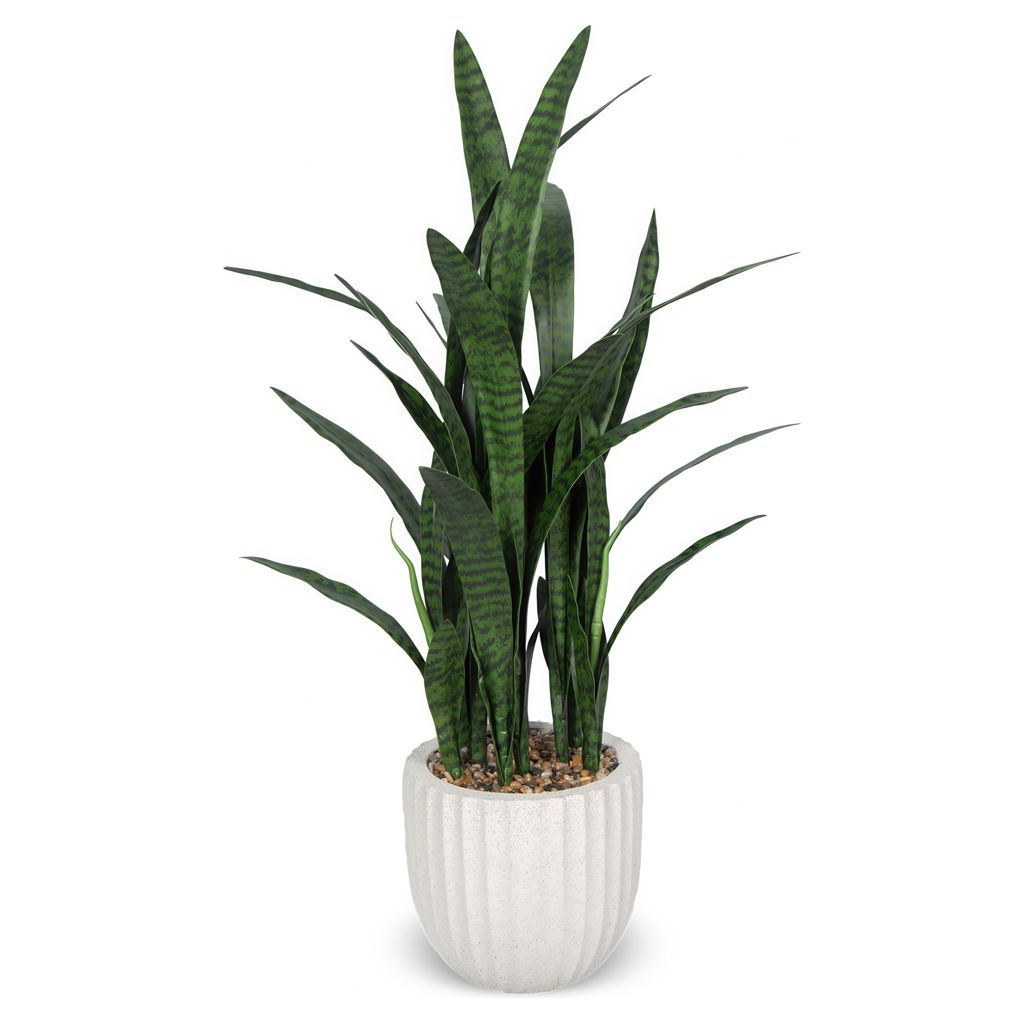La Sansevière artificielle dans un pot de fibre de verre beige de 47 po de hauteur est une plante éternelle abordable aux allures réalistes qui étanchera votre soif de beauté.