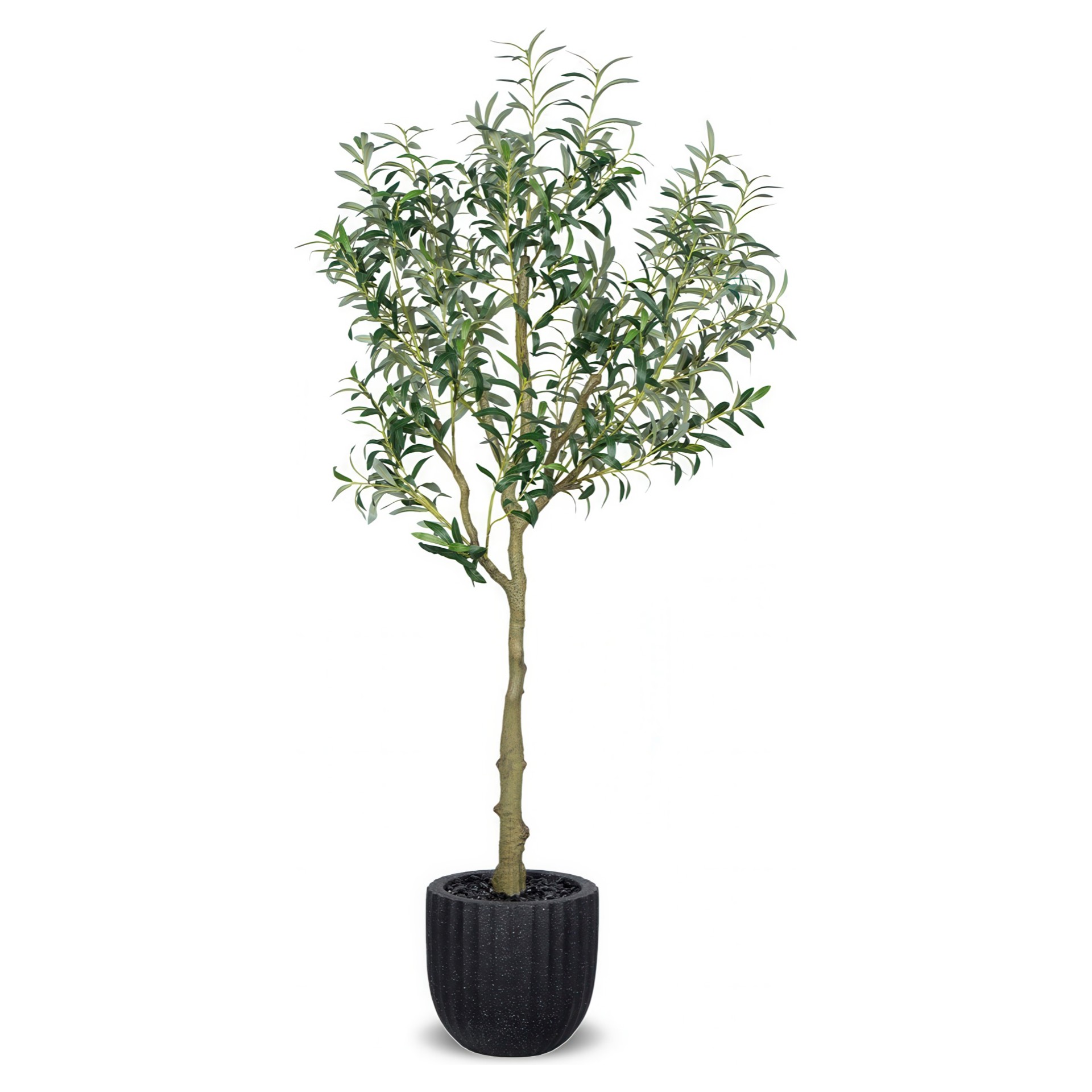 L'Olivier artificiel dans un pot de fibre de verre noir de 72 po de hauteur est une plante éternelle abordable aux allures réalistes qui étanchera votre soif de beauté.