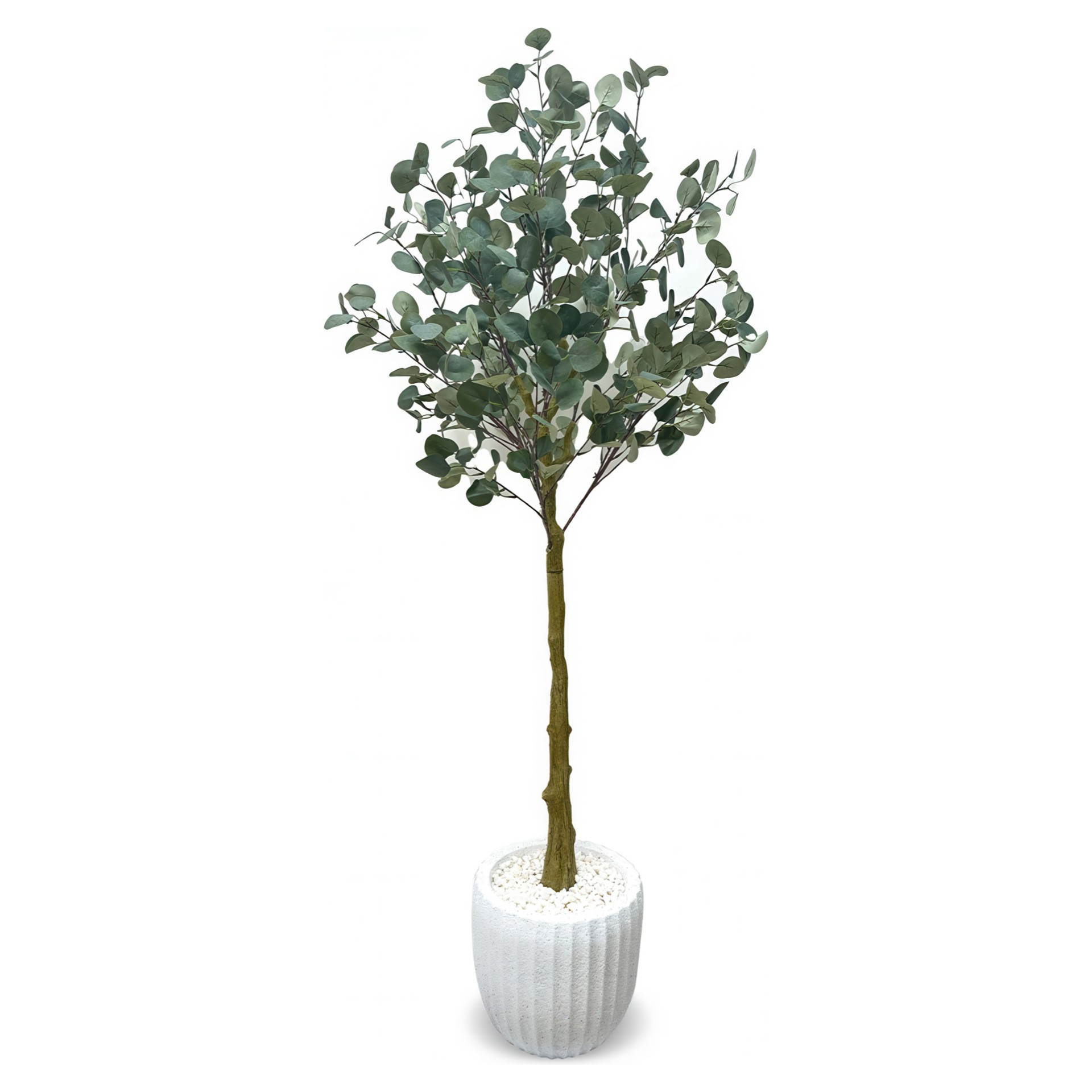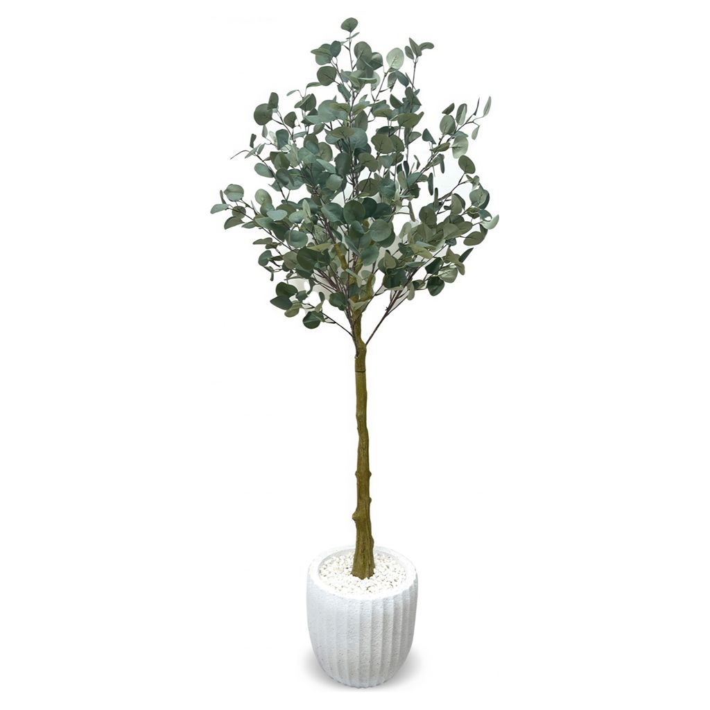 L'Eucalyptus artificiel dans un pot de fibre de verre blanc de 69 po de hauteur est une plante éternelle abordable aux allures réalistes qui étanchera votre soif de beauté.