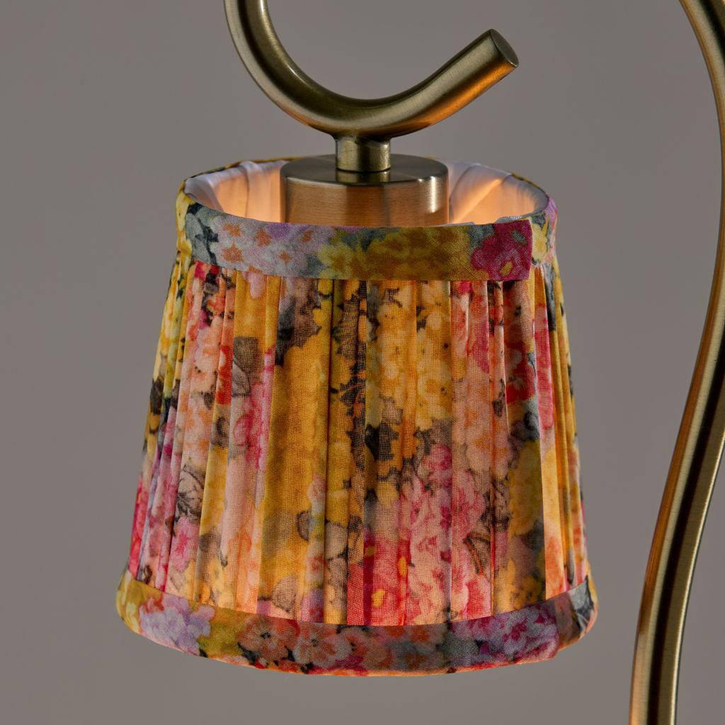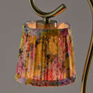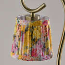 Sa base en métal laiton et son bras courbé soutiennent un abat-jour plissé en tissu multicolore, évoquant une élégance d´inspiration vintage.