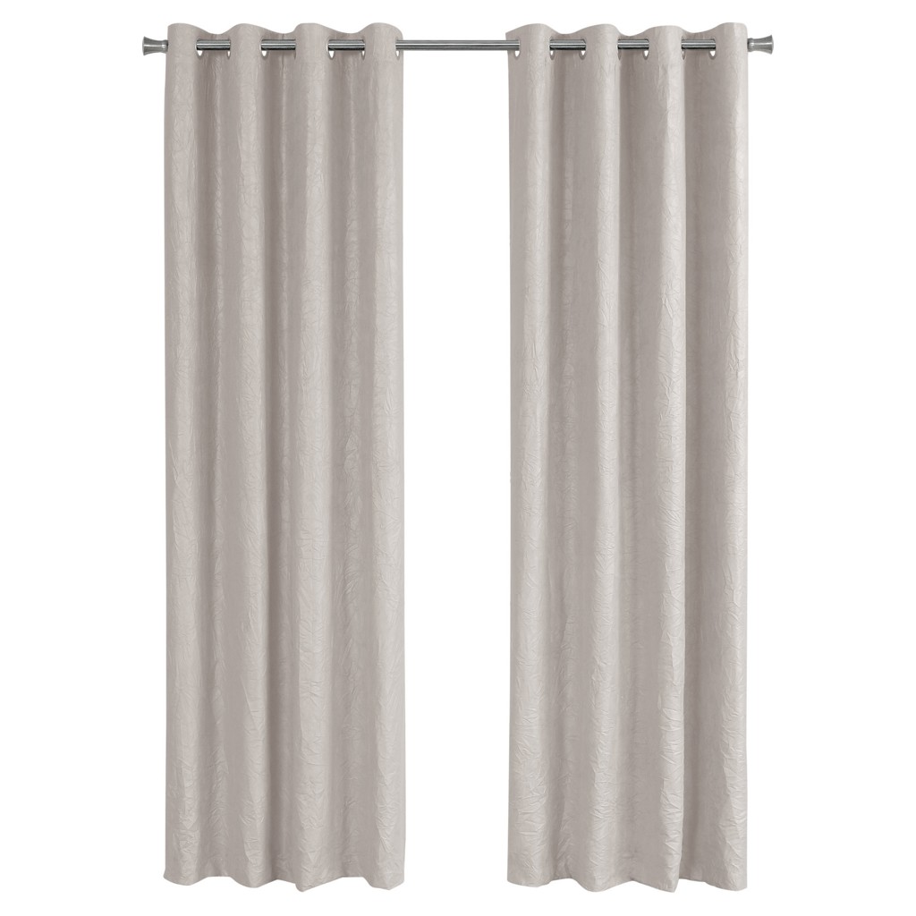 Chaque rideau en micro-daim couleur ivoire de 52"L x 95"H et sans doublure présent une texture froissée moderne.