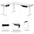 FABRIQUÉ AU QUÉBEC : 2 personnes sont nécessaires pour l’assemblage. 71. 1 po (180,3 cm) L x 59 po (149,9 cm) P x 28 - 45 po (71,1 à 114,3 cm) H. Bureau entièrement réversible. Le bureau respecte ou surpasse les normes de sécurité et de performance ANSI/BIFMA.