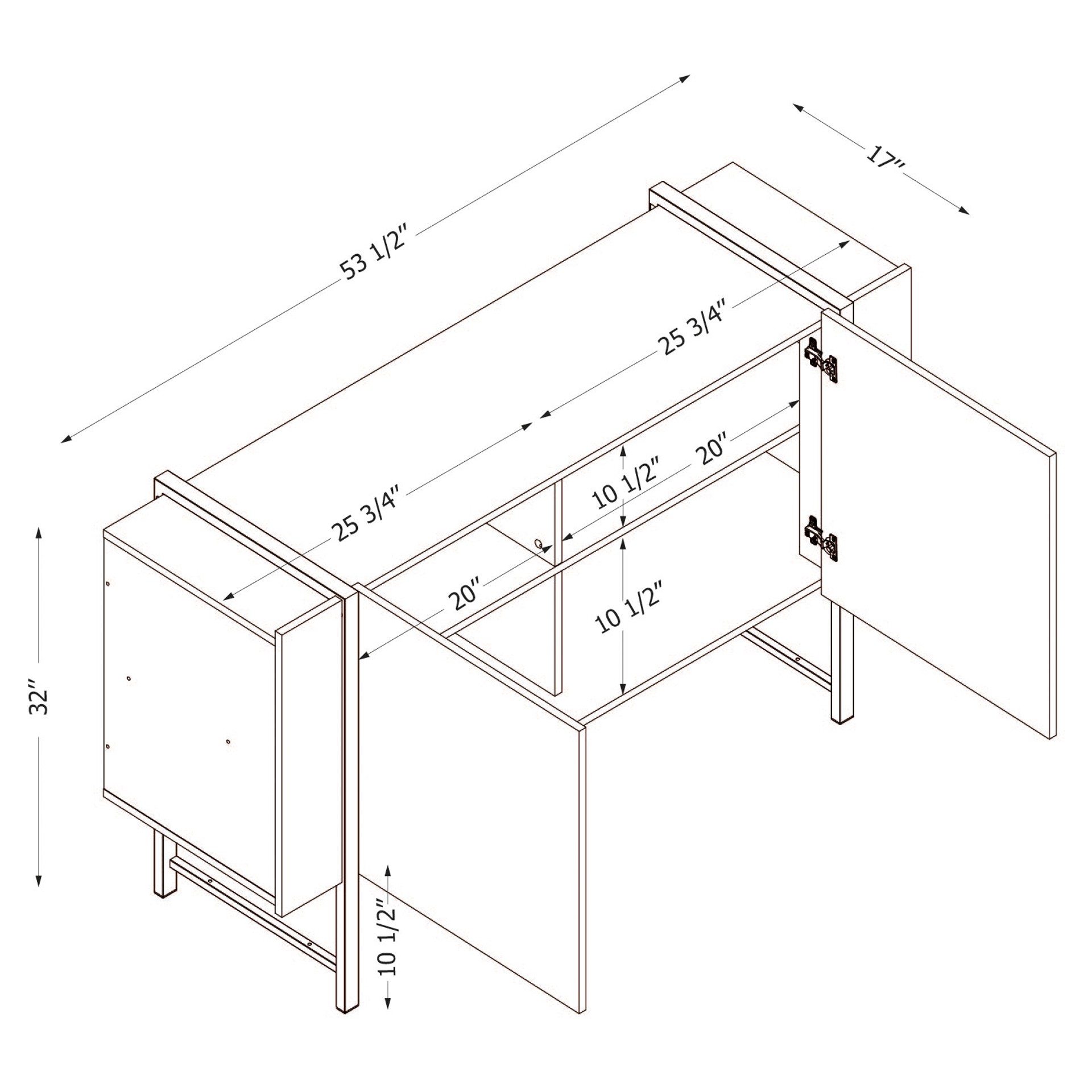4 ESPACES DE RANGEMENT : en plus d´être chic, ce buffet est conçu pour vous offrir davantage de rangement avec ses quatre espaces de rangement fixes en mesure de supporter une charge allant jusqu´à 25 lb chacune.