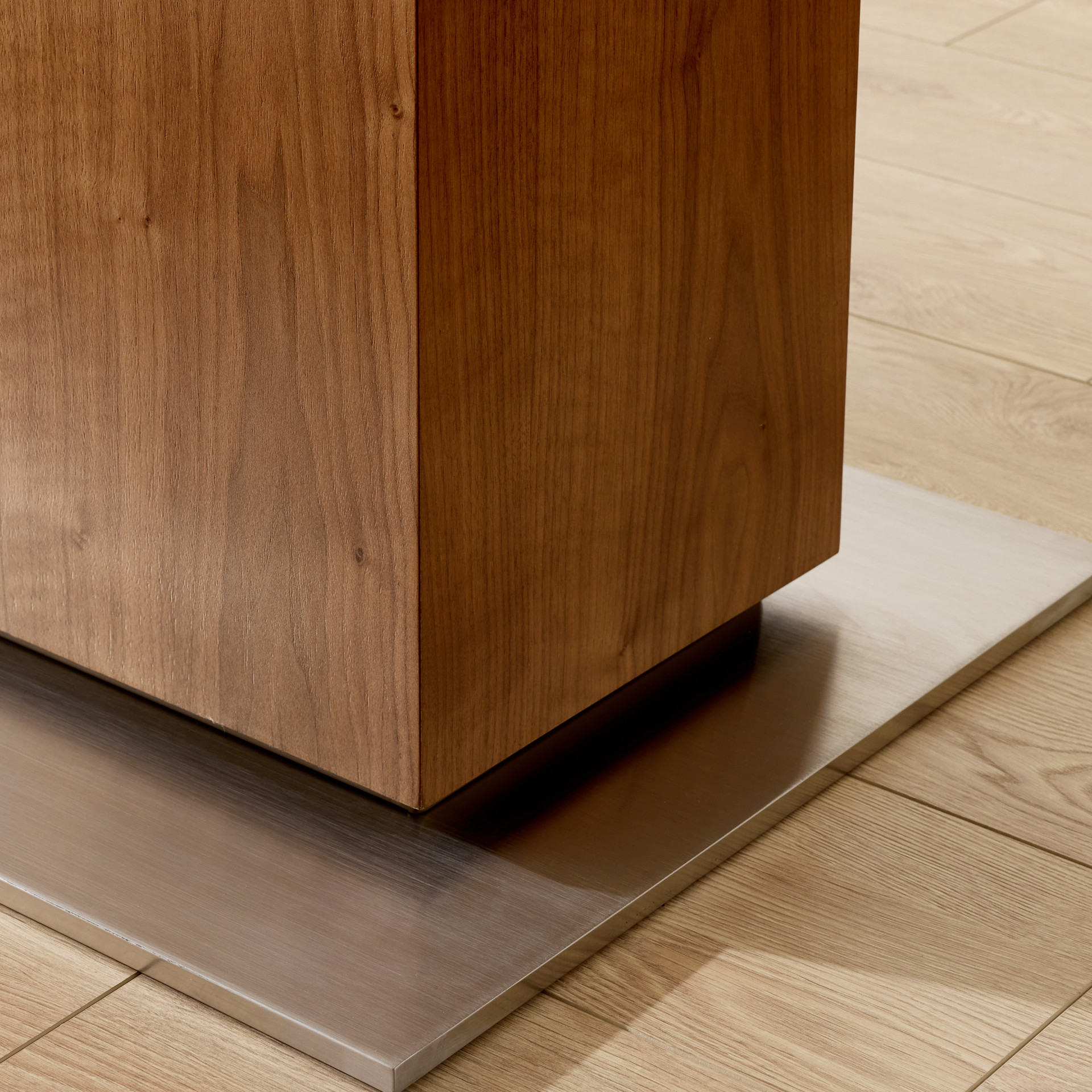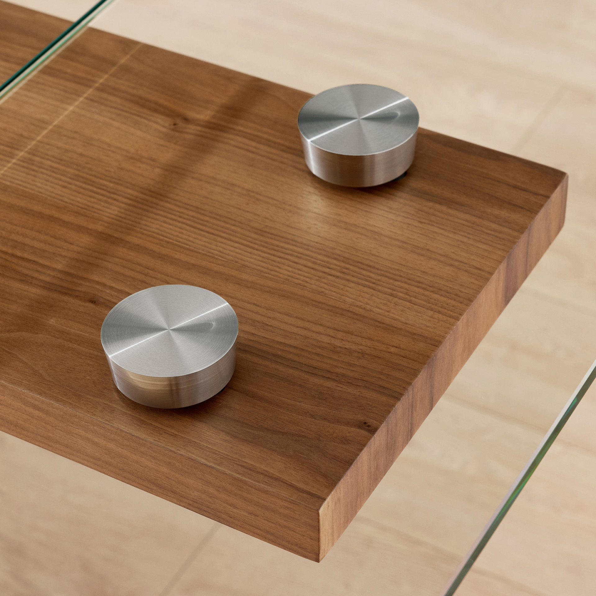 Chaque détail a été pensé pour la qualité : le verre teinté apporte profondeur et clarté, tandis que le noyer noble confère une présence intemporelle. Les lignes épurées s'adaptent à tout intérieur, créant un espace de convivialité sophistiqué.