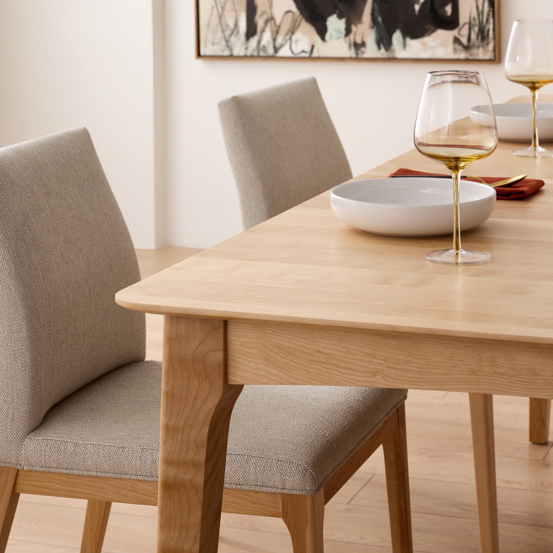 Ajoutez une touche de chaleur et de raffinement à votre salle à manger avec cette magnifique table en bois de merisier au ton naturel. Son design intemporel met en valeur la richesse du bois et s'harmonise facilement avec tous les styles de décor.