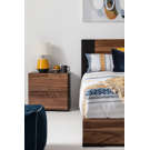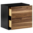 Cette table de chevet allie élégance et praticité avec son design bicolore distinctif. Son contraste saisissant entre le noir profond et les tons chauds du bois crée un impact visuel immédiat dans votre chambre. Les deux tiroirs spacieux offrent un rangement généreux pour vos essentiels du quotidien, tandis que les poignées encastrées assurent des lignes épurées et une ouverture facile.