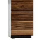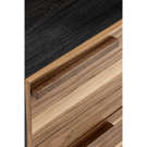 La construction en mélamine garantit durabilité et facilité d'entretien, parfaite pour un usage quotidien. Les tiroirs glissent en douceur grâce à leur système de coulisses intégré, révélant un intérieur en bois clair.