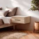 Chaque table de chevet flottante vient avec son propre matériel d´ancrage au mur. Installez-les de part et d´autre de votre lit à la hauteur qui convient le mieux à vos besoins. L´avantage de ce type de rangement d´appoint est qu´il dégage l´espace au sol, pour une meilleure circulation et un ménage grandement facilité. Un effet wow assuré!