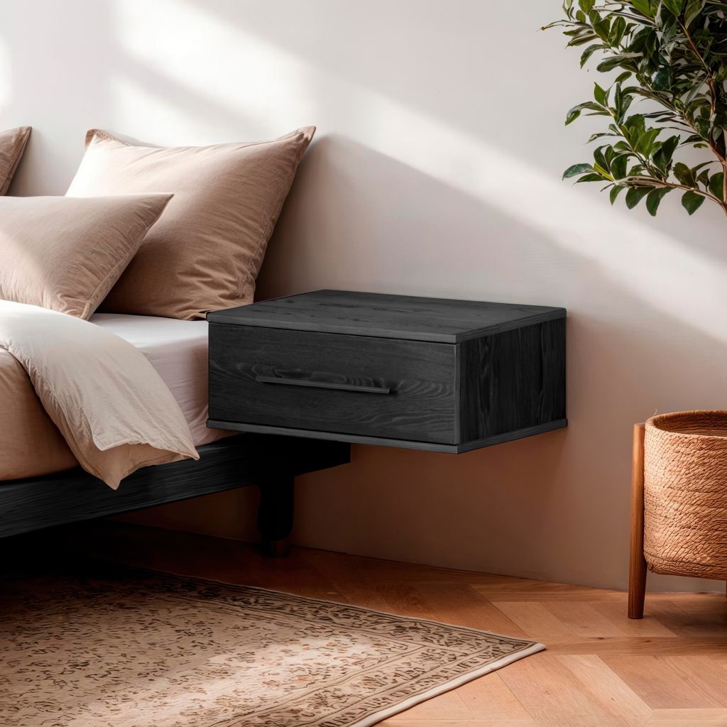Chaque table de chevet flottante vient avec son propre matériel d´ancrage au mur. Installez-les de part et d´autre de votre lit à la hauteur qui convient le mieux à vos besoins. L´avantage de ce type de rangement d´appoint est qu´il dégage l´espace au sol, pour une meilleure circulation et un ménage grandement facilité. Un effet wow assuré!
