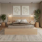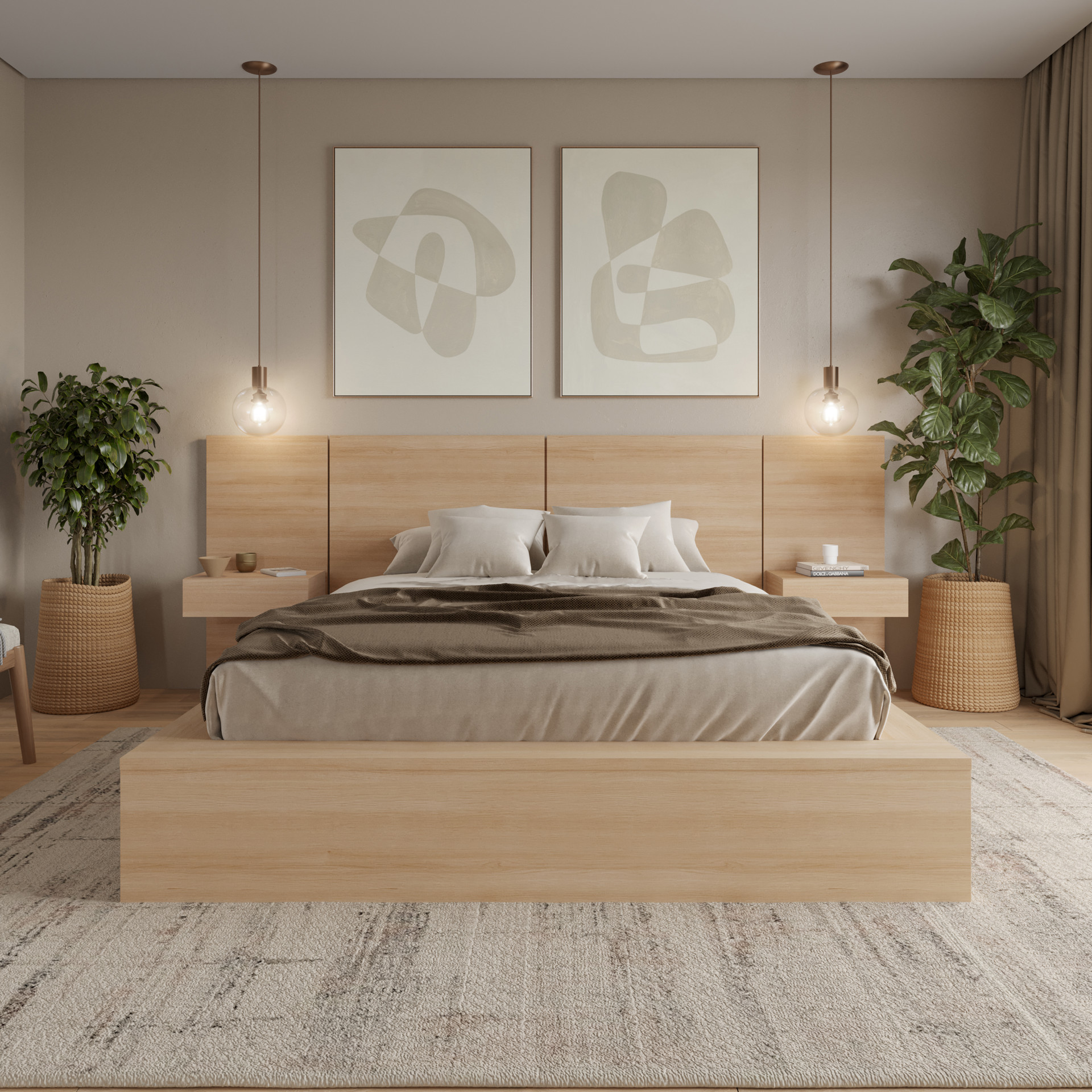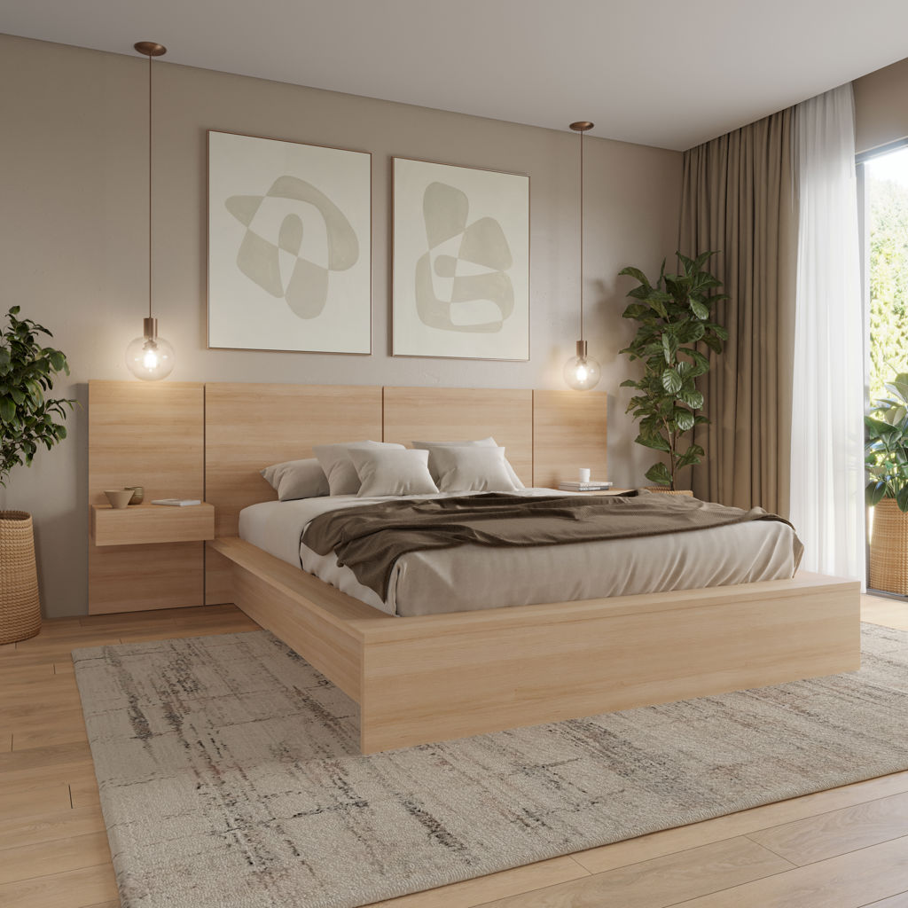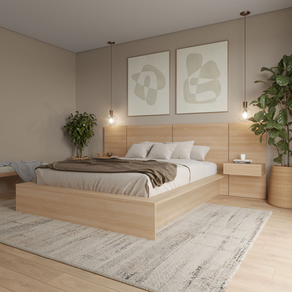 Découvrez notre lit plateforme, une parfaite fusion entre design contemporain et moderne. Fabriqué en bois d'ingénierie de haute qualité, ce lit de finition en chêne naturel apportera une touche chaleureuse et organique à votre espace.