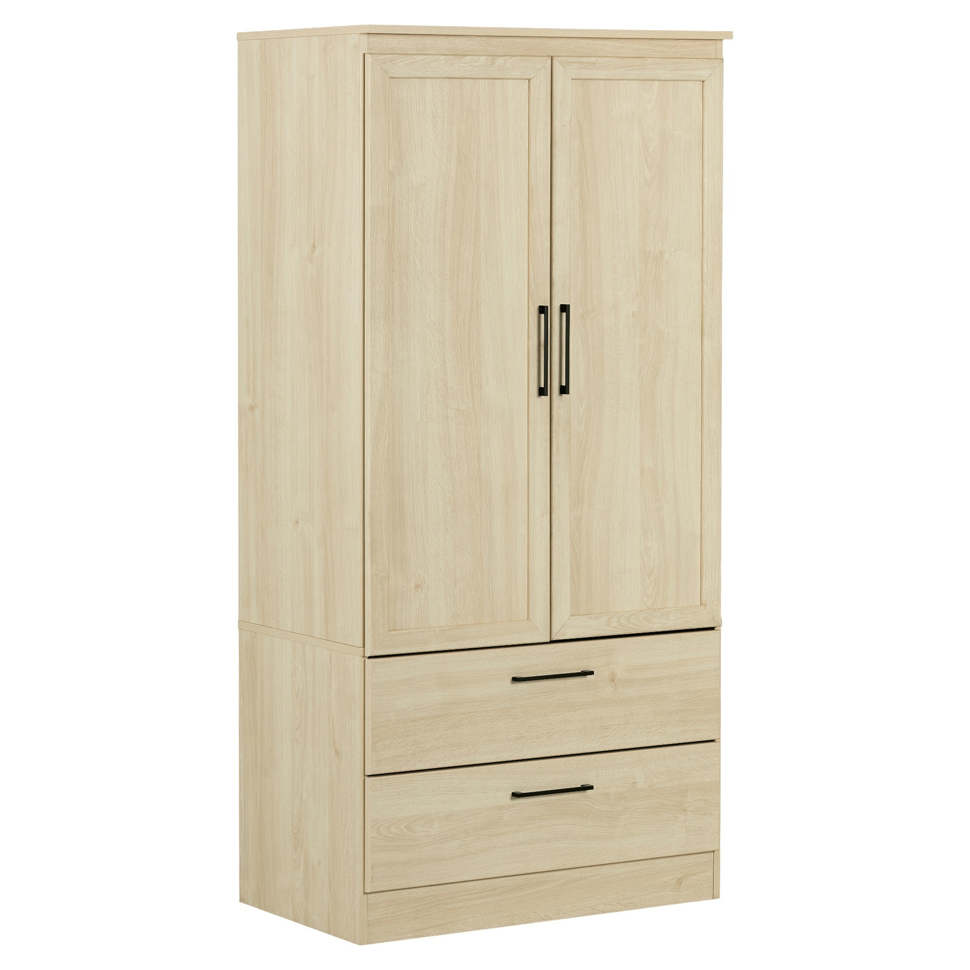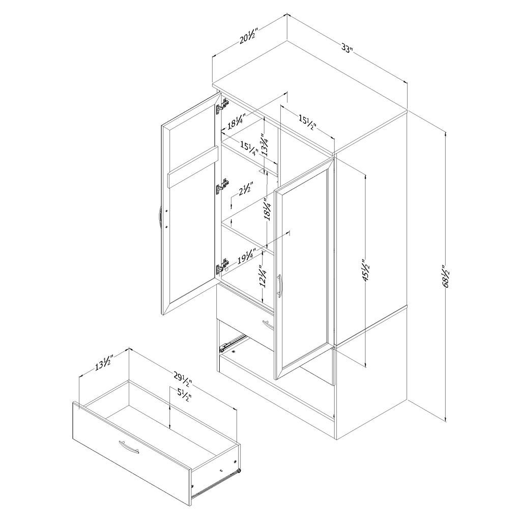 Vos vêtements seront accessibles et bien entretenus grâce aux compartiments ingénieux de cette penderie. Fini les robes et les chemises froissées avec la tringle de métal. Derrière les portes d´armoire, vous trouverez trois espaces de rangement séparés par deux tablettes ajustables ainsi que deux crochets pour accrocher des foulards ou des cravates. Les deux tiroirs spacieux pourront accueillir des sous-vêtements et des chaussettes. Assurez-vous d´avoir un miroir à proximité et vous serez toujours bien habillé!