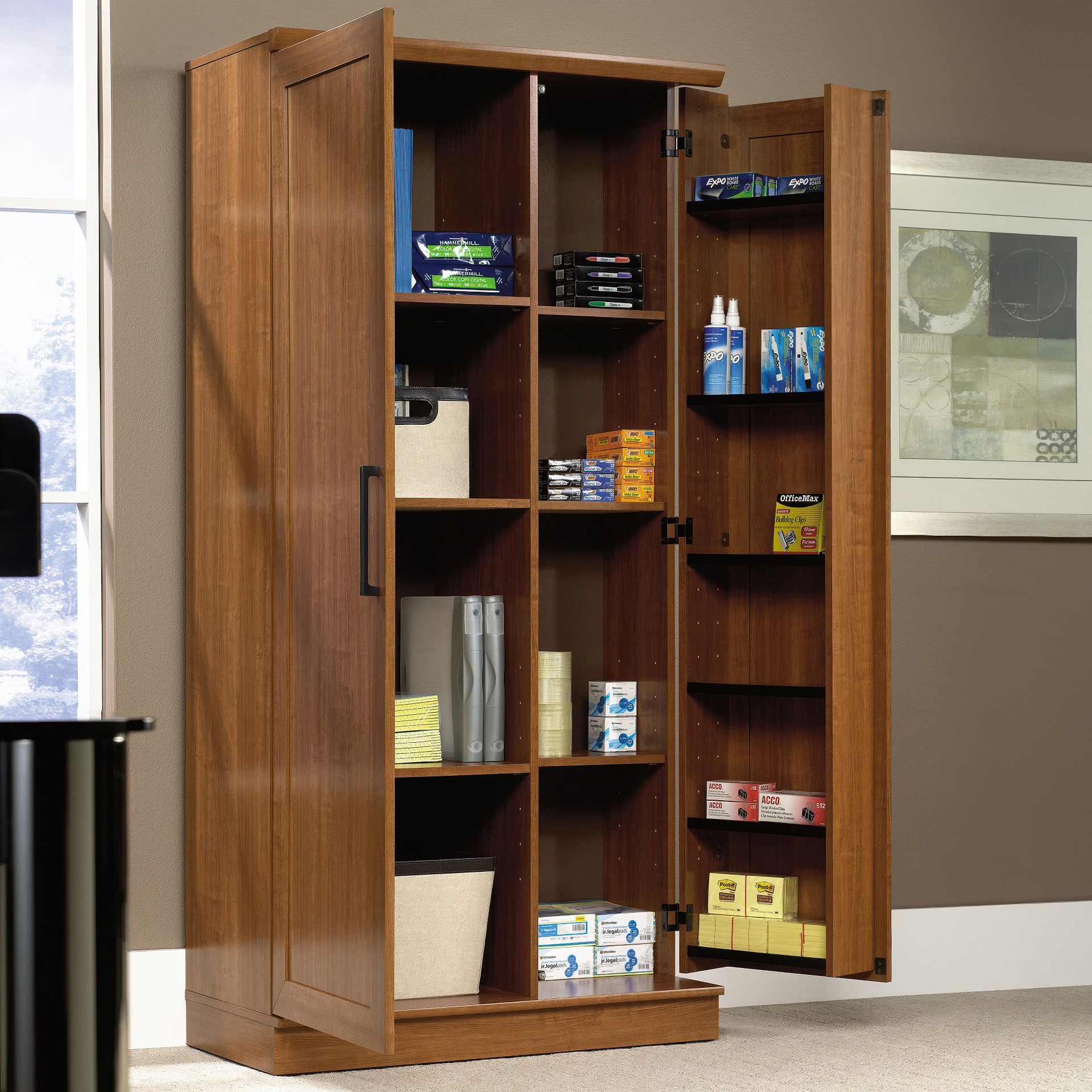 L'une des portes contient un rangement pivotant avec trois étagères réglables et trois étagères fixes pour une variété infinie d'options de personnalisation - parfait pour un espace de bureau !