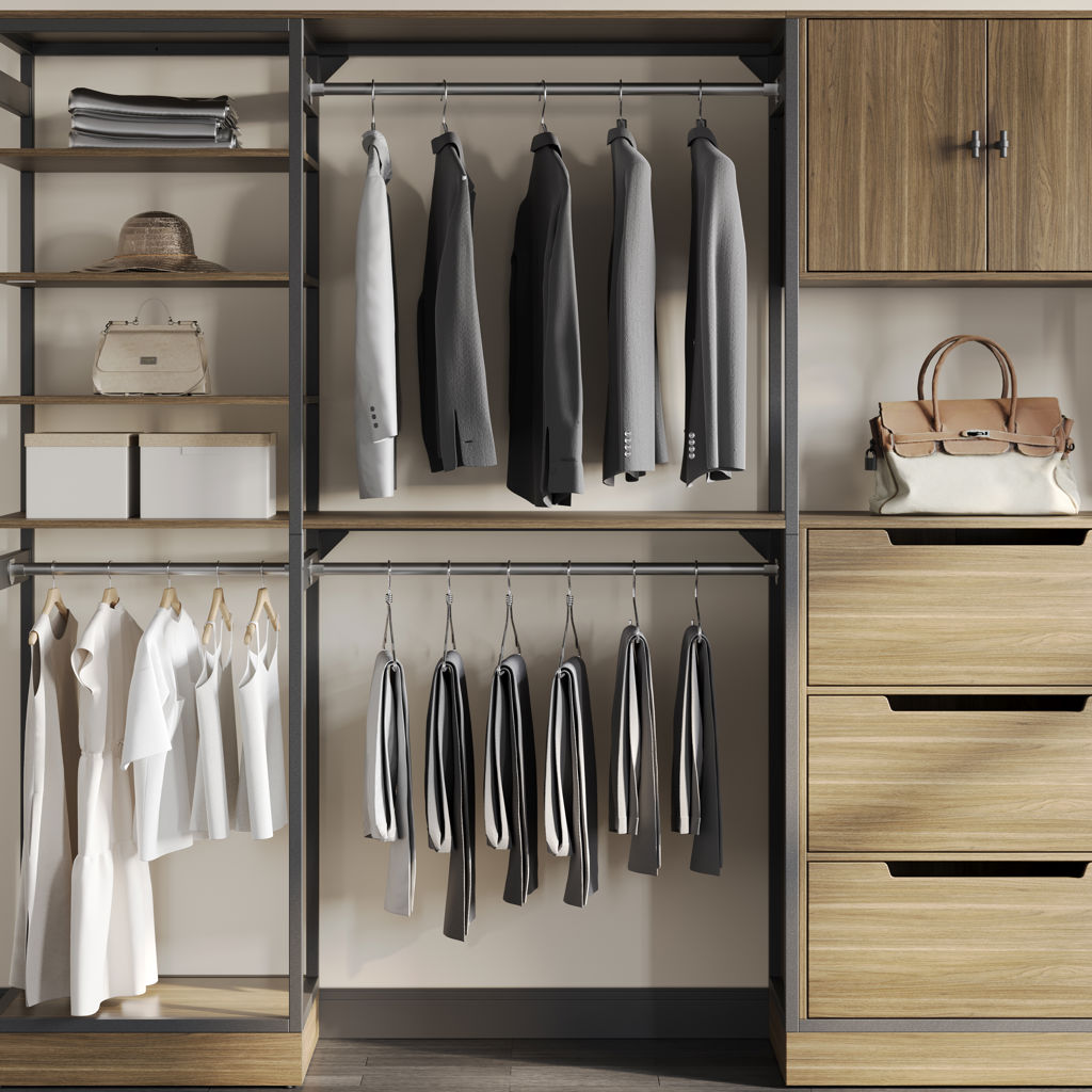 La construction en bois composite et en métal permet flexibilité, fonctionnalité et longévité, garantissant que vos vêtements restent organisés pour les années à venir.