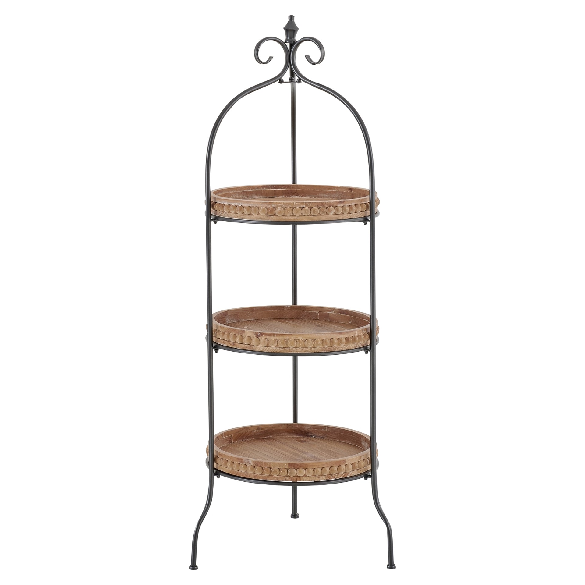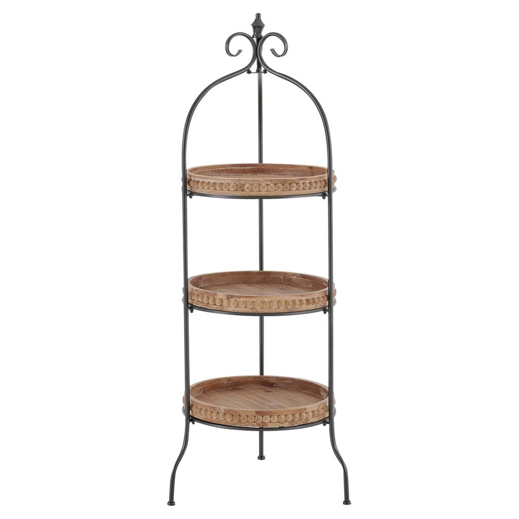 Surplombée d'une enjolivure métallique et composée de plateaux circulaires en bois sculpté, cette étagère d'un raffinement singulier met en valeur votre collection de plantes en cascades, dans un intérieur qui ose les touches décoratives ultra-chics.
