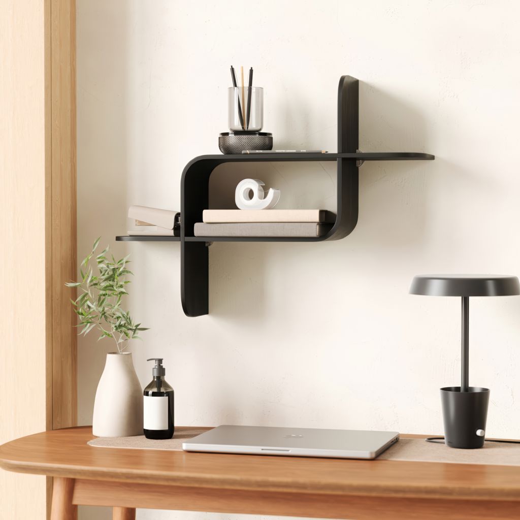 Donnez vie à n'importe quel espace mural avec la tablette murale MONTAGE. Fabriquée en bois cintré naturel, cette solution de rangement moderne allie des formes modernes et des finitions naturelles. Facile à installer et avec une capacité de poids totale de 15 lb. (6,8 kg), montrez vos livres, plantes et décorations préférés, et bien plus encore.
