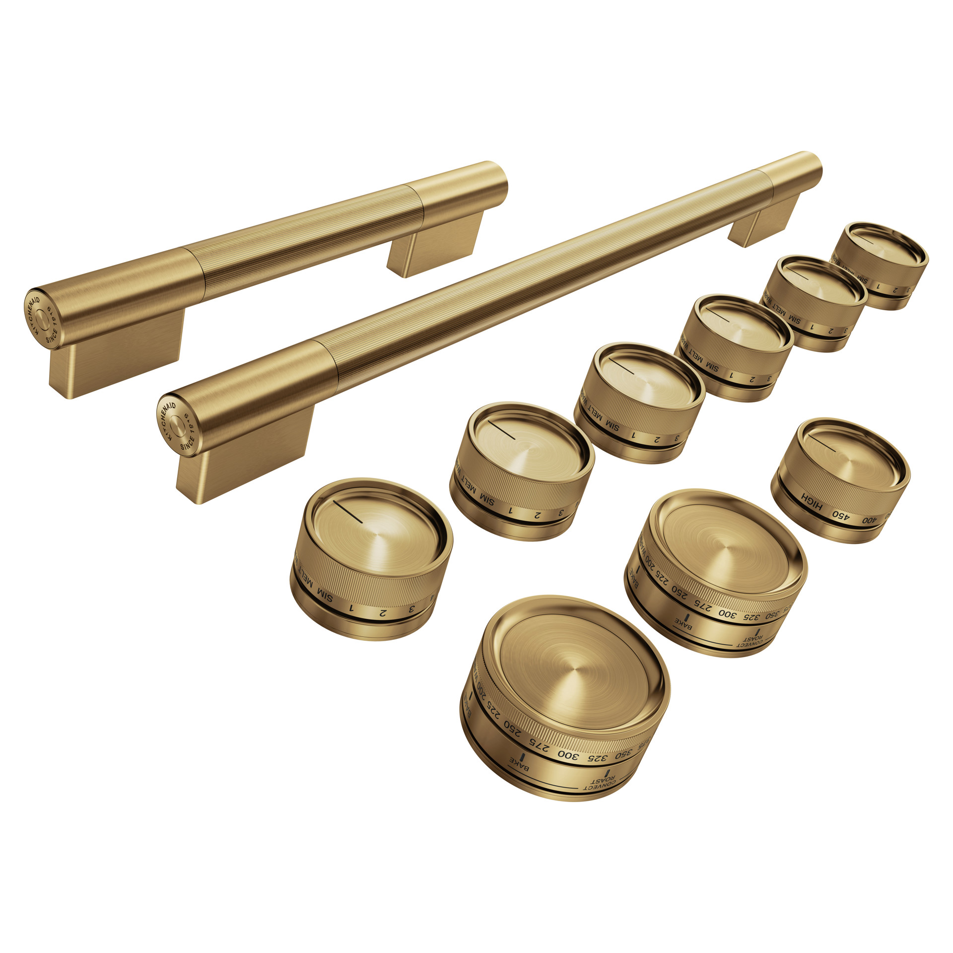 Personnalisez votre quincaillerie avec un ensemble de poignées et boutons couleur laiton. Conçue pour s'harmoniser avec les robinets de cuisine et les poignées d'armoires, la palette de métaux variés s'accorde avec toutes les finitions extérieures KitchenAid®, vous permettant ainsi de créer des combinaisons en toute confiance.
