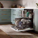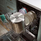 Chargez plus et faites fonctionner moins ce lave-vaisselle de grande capacité. Avec un panier supérieur suffisamment profond pour contenir une marmite et des fonctions qui s'ajustent pour faire de la place pour les grandes casseroles et les casseroles, vous pouvez ranger tous les plats que votre famille entasse. De plus, vous pouvez déplacer ou séparer le panier à couverts flexible en 3 pièces pour libérer de l'espace.