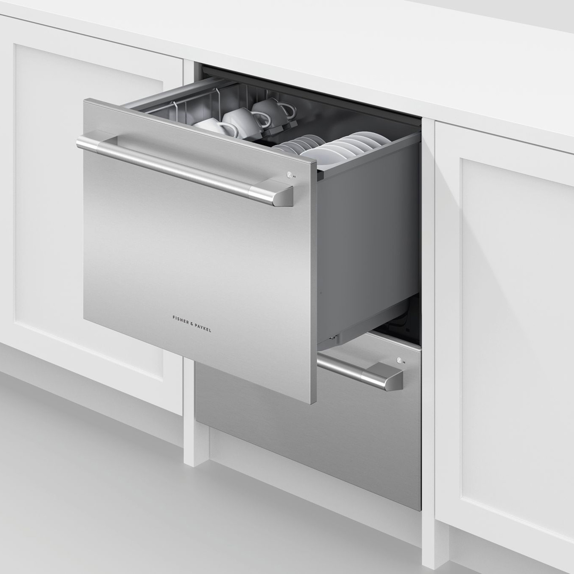Grâce à son style distinct et audacieux, ce modèle de lave-vaisselle DishDrawer est conçu pour s’agencer au concept professionnel de la gamme d’appareils ménagers de Fisher & Paykel.