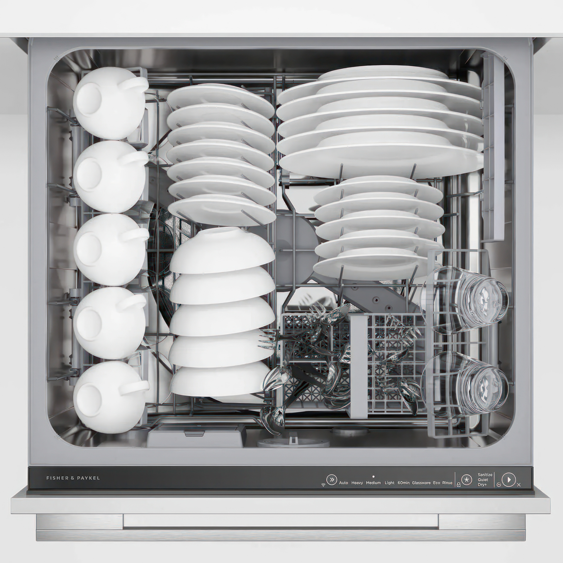 Les deux tiroirs peuvent contenir une véritable demi-charge. Chaque tiroir fonctionne indépendamment, vous pouvez donc laver une charge tout en empilant l'autre tiroir, ou laver simultanément sur des cycles séparés.