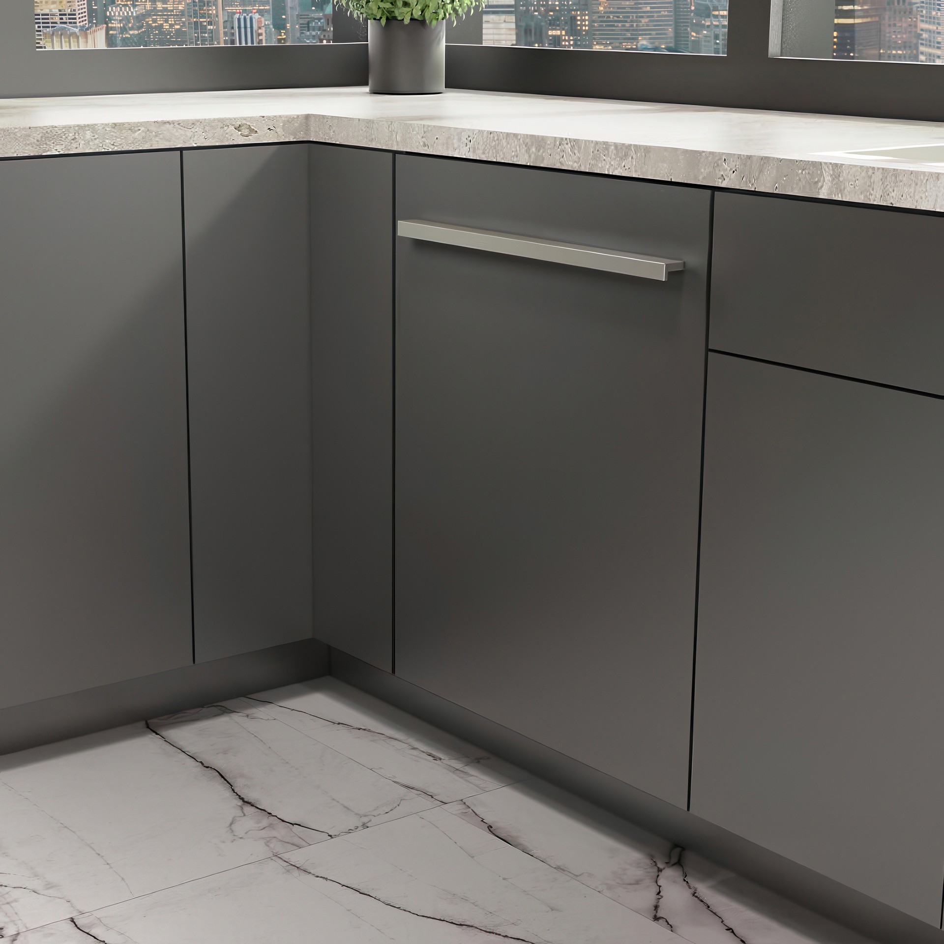 Libérez votre espace avec des options de panneaux personnalisés qui peuvent disparaître dans l'arrière-plan ou se démarquer dans une expression de style sans complexe. Les panneaux et poignées personnalisés doivent être achetés séparément.