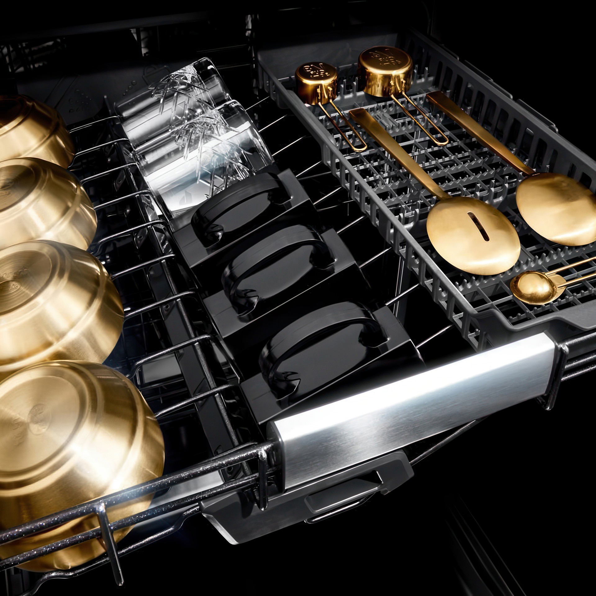 Les dents réglables dans les paniers du milieu et du bas permettent de reconfigurer l'espace pour gérer des ustensiles de cuisine peu courants lors d'occasions spéciales ou pour s'adapter au quotidien.